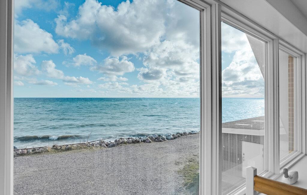 Nyd et rummeligt feriehus med panoramaudsigt og kun 25 meter til Karlby Strand i Grenaa.