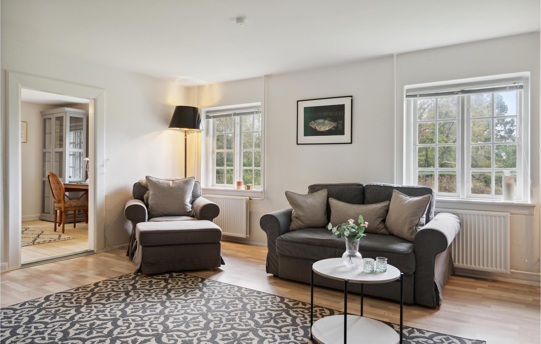 Tilbring jeres ferie i dette hus med en fantastisk beliggenhed i slotsparken på Gavnø Slot og nyd roen og den smukke natur. Her er godt for krop og sjæl, og I kan nyde tiden sammen i den hyggelige og indbydende atmosfære, der lover jer en smuk udsigt over det grønne fra alle værelser. Efter en gåtur i slotsparken kan I samles i stuen til spil nær den hyggelige brændeovn eller blot smække fødderne op i en af sofaerne med en god bog. Når solen skinner på den dejlige naturgrund med store trækroner, kan I mødes til morgenmad eller grillhygge i det fri. Den idylliske have og udsigten til fjorden gør stedet helt specielt, og her går solbadning, leg på græsplænen og fiskeri ved vandet hånd i hånd.