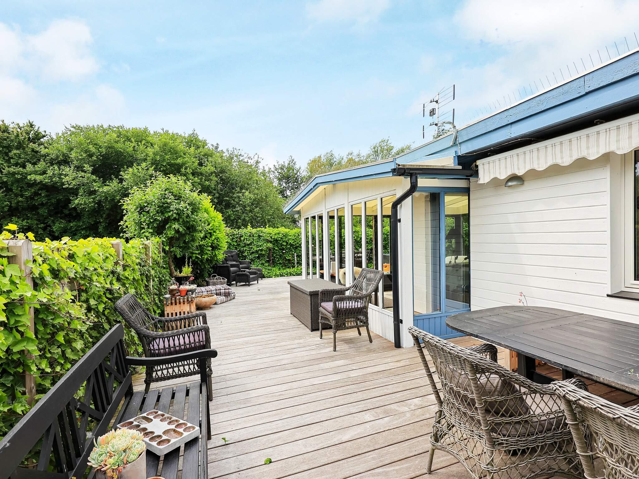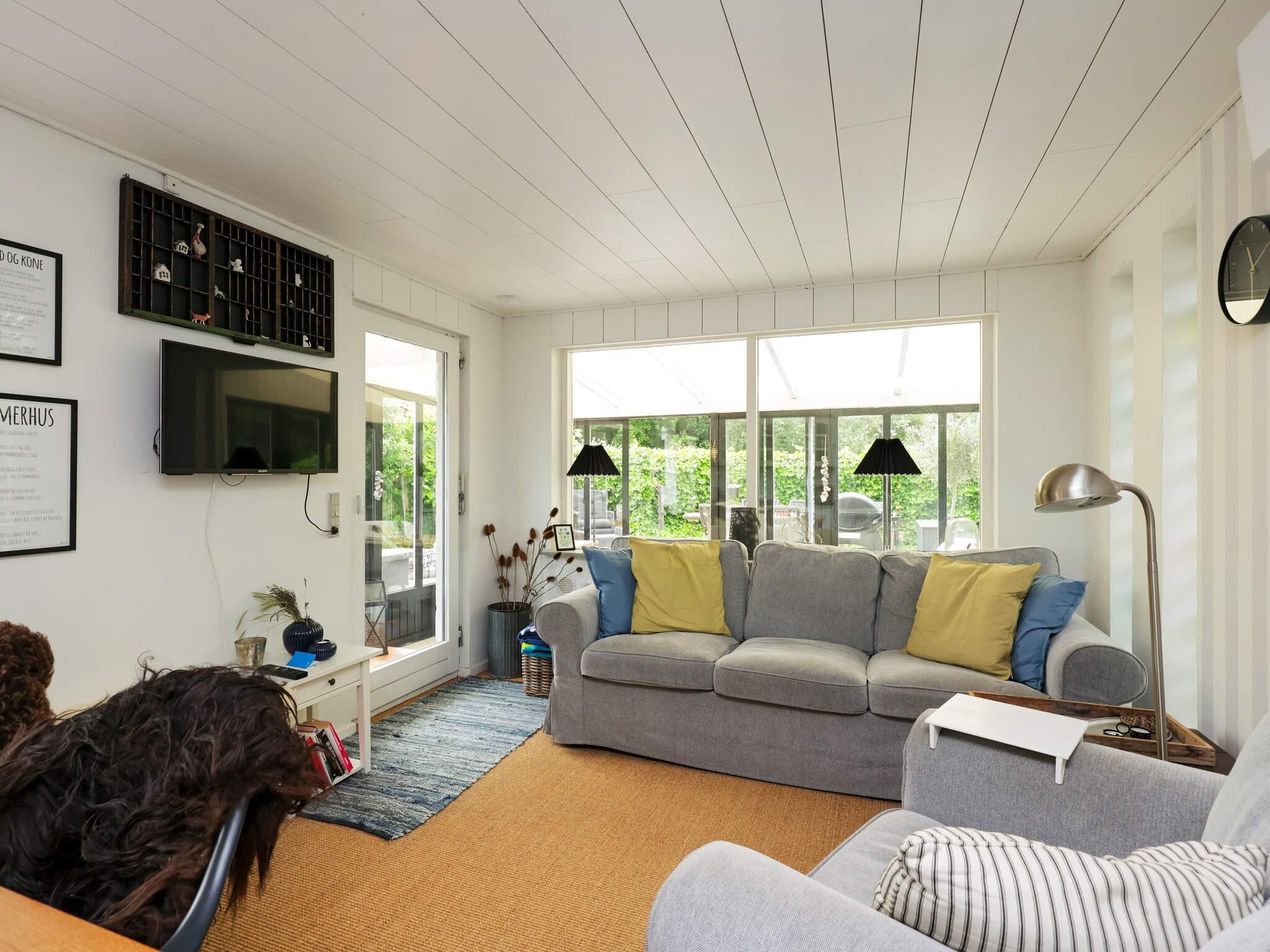 Indenfor byder huset på en lys stue udstyret med tv og Chromecast, så du kan streame dine egne udbydere. Køkkenet er åbent integreret med opholdsrummet, hvilket gør det nemt at lave mad, mens man stadig er en del af familielivet. Der er to soveværelser i hovedhuset, begge indrettet med dobbeltsenge. Derudover giver et separat rum med udvendig adgang, der også fungerer som et lille værksted, mulighed for at folde en 140 cm bred dobbeltseng ud for ekstra sovekapacitet. Badeværelset i huset er udstyret med bruser og vaskemaskine for din bekvemmelighed.