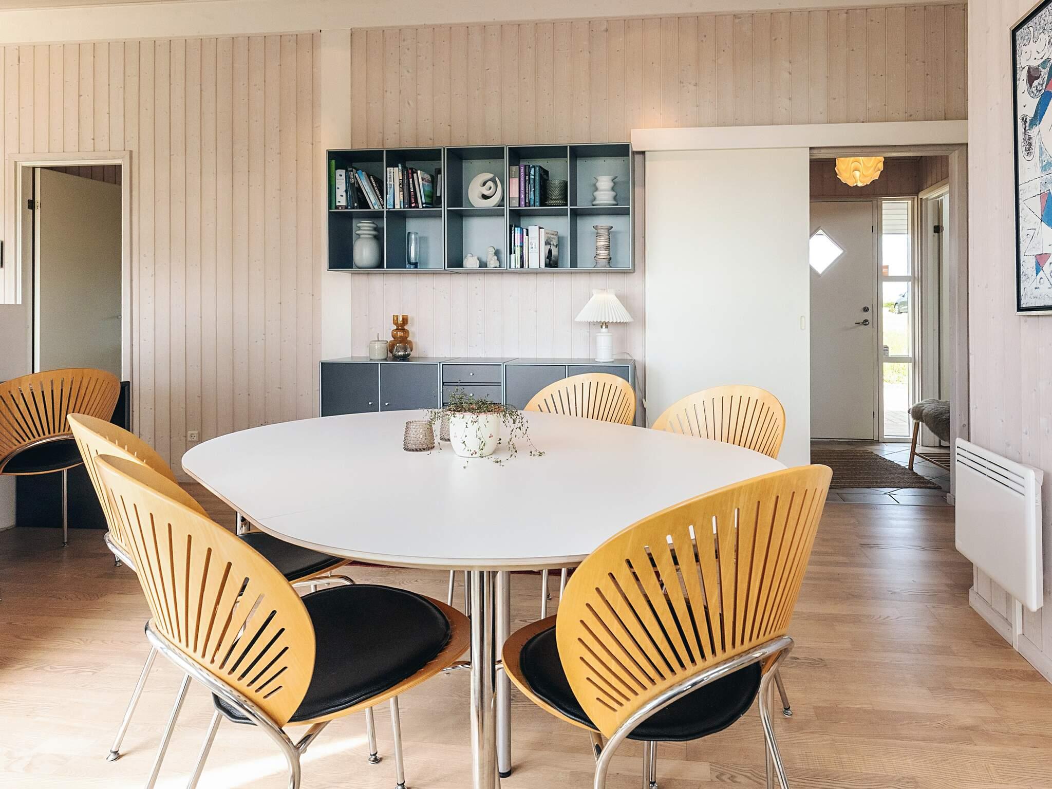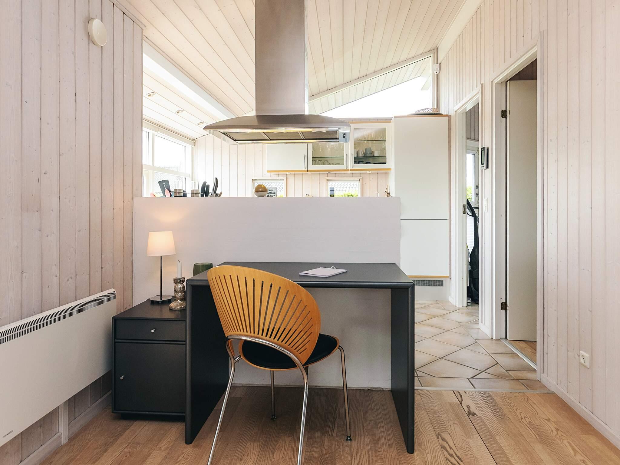 Huset byder indvendigt på et åbent, moderne køkken med køle/fryseskab, opvaskemaskine og masser af arbejdsplads, problemfrit forbundet med den lyse opholdsstue. I stuen er der en hyggelig brændeovn, tv med Chromecast til streaming af egne tjenester samt adgang til DR. Højhastighedsinternet og en energieffektiv varmepumpe sikrer komfort hele året rundt. Et praktisk bryggers med vaskemaskine tilføjer komfort til længere ophold.
