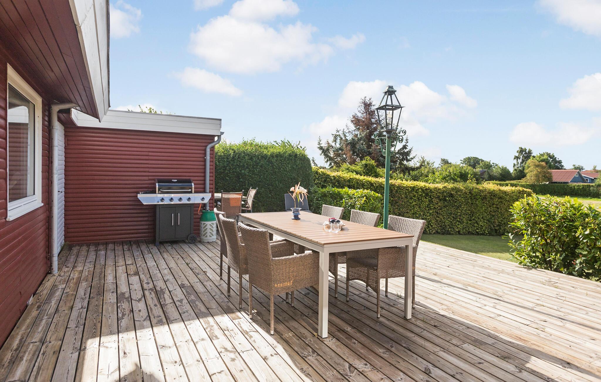 Når I vender hjem efter dagens eventyr kan I læne jer tilbage i de bløde møbler og sætte en god film på. Der er også mulighed for sjove aktiviteter i haven. Snup et spil bold med familien eller solbad på terrassen, mens I får læst en god bog. Sidst på dagen kan I tænde op i grillen og gøre klar til den store sommermiddag. Børnene kan sikkert også få god tid til at gå i sandkassen mellem jeres strandture.