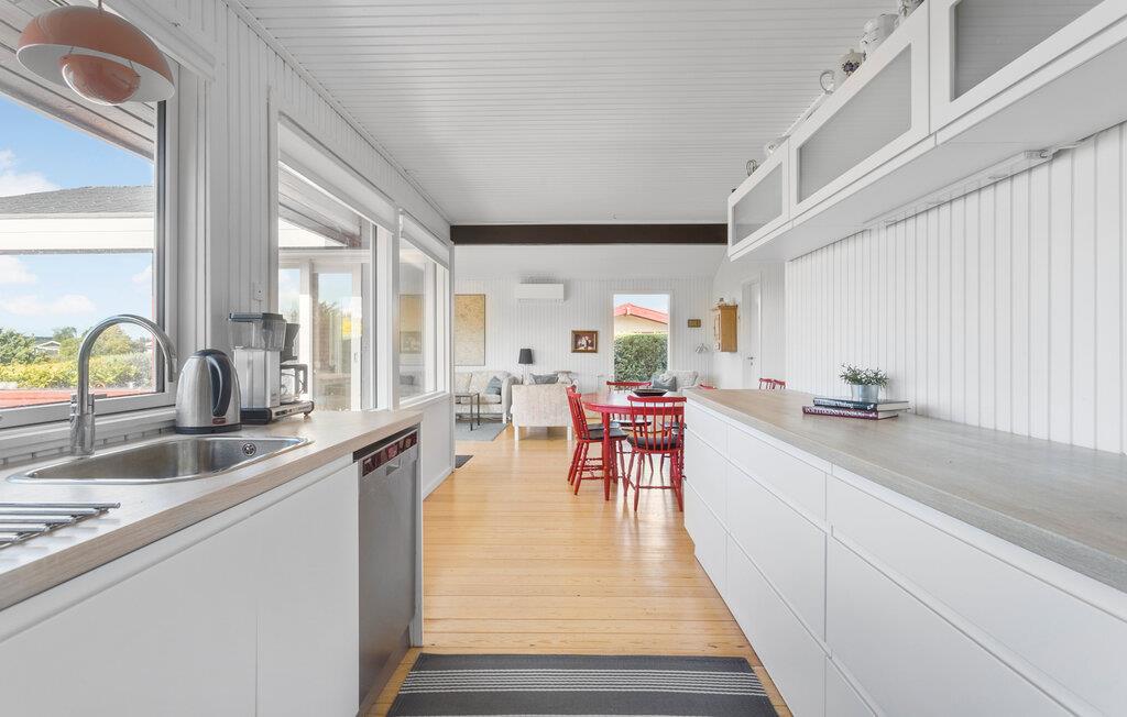 Der er ikke langt til Karrebæksminde Strand og flere udflugtsmål, så dette hus er et godt udgangspunkt for jeres feriedage på Sydsjælland. Huset er lyst, åbent og kvalitetsbevidst møbleret med hyggelige indretningsløsninger, som gør det nemt at slappe af. Dæk op til dagens måltider ved spisebordet ved vinduerne mod haven. Her kan alle komme ned i tempo og glemme hverdagens travle program.