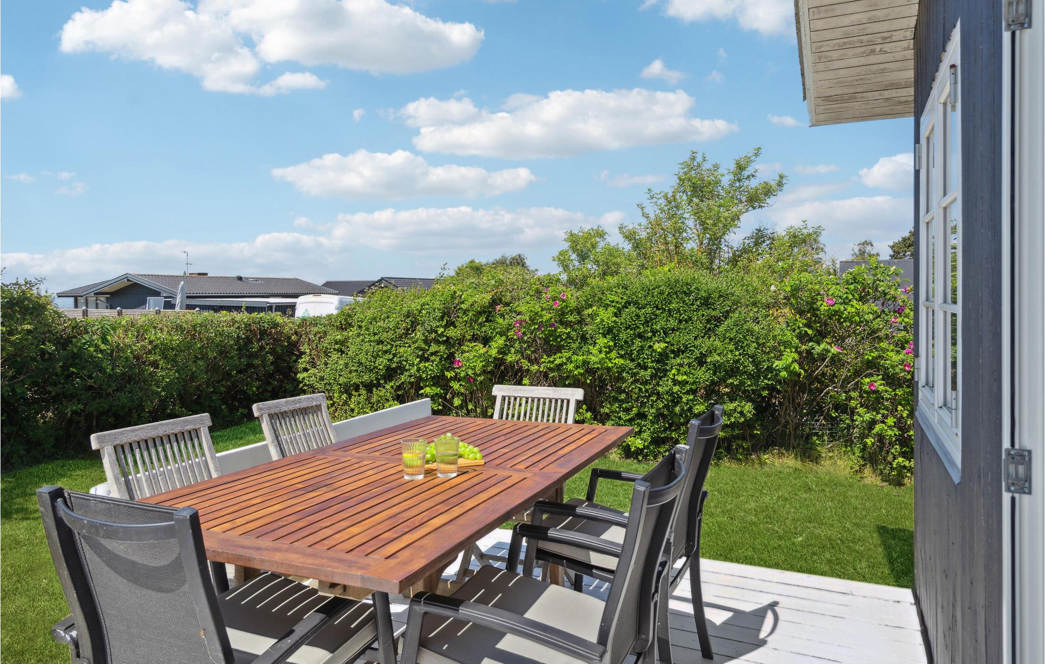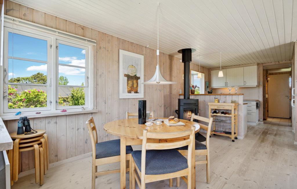 Tilbring en dejlig ferie i dette indbydende feriehus med lyse trævægge og et hyggeligt interiør. Her finder I alt, hvad I har brug for til en ubekymret ferie. Nyd morgenmaden ved det runde spisebord, mens I planlægger jeres opdagelsestur rundt på Enø. Efter en lang udflugt kan I smække benene op på sofaen og spille kort. Det veludstyrede køkken inviterer til hyggelig madlavning sammen med børnene. Måske står den på pandekager med syltetøj i aften? På terrassen kan I grille og nyde jeres måltider. Efter flere løbekonkurrencer om eftermiddagen kan I slukke tørsten og stille den lille sult med hjemmelavet limonade og friske jordbær. Stranden ligger kun få skridt væk. Gå ud på badebroen og spring i det forfriskende vand. I kan også kaste fiskesnøren ud om aftenen. Fra ca. midten af april til midten af juni er det hornfiskesæson! I kan også beundre smukke solnedgange på stranden.