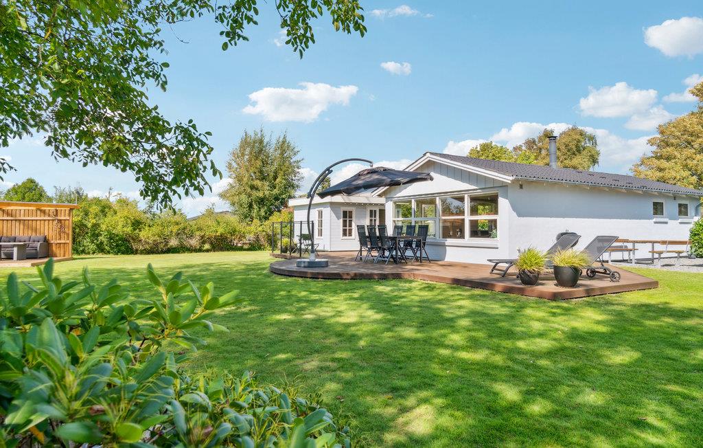 Velkommen til dette tiltalende hus med en stor, anlagt have og mange hyggekroge. Her er I tæt på både fjord og hav, og det smagfuldt indrettede hus med en lys atmosfære giver jer de ideelle rammer for en fredfyldt ferie med nærvær. Hyg jer med fælles madlavning og kæmp imod hinanden i brætspilsdyster. På varme dage kan I nyde alle jeres måltider udenfor. Her kan I vælge mellem flere terrasser, og den store have inviterer til mange sjove timer i det fri. Mærk solens varme stråler på liggestolen og glæd børnene med et bål om aftenen. Stranden når I nemt til fods.