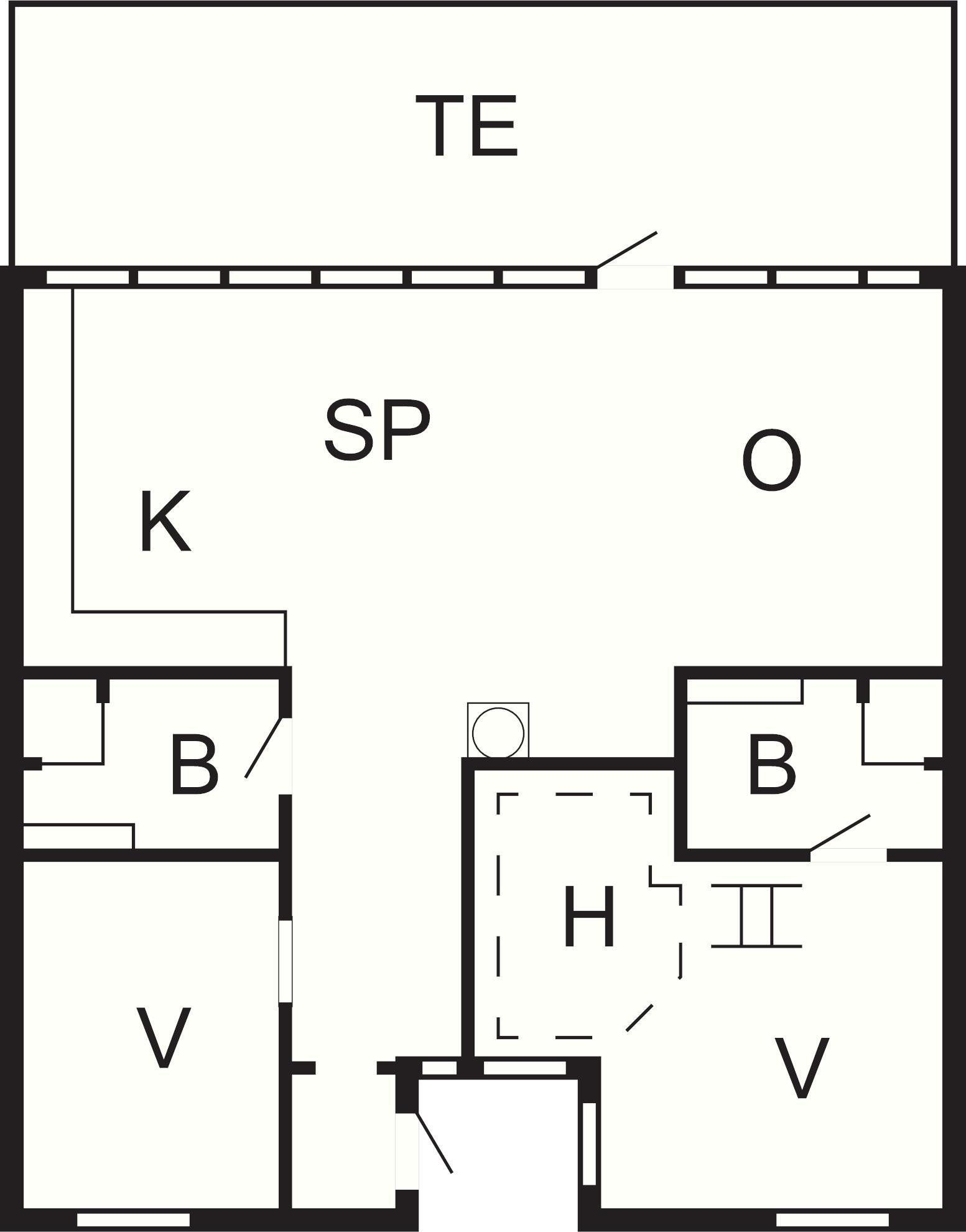 1 Opholdsstue: (2O), brændeovn, tv