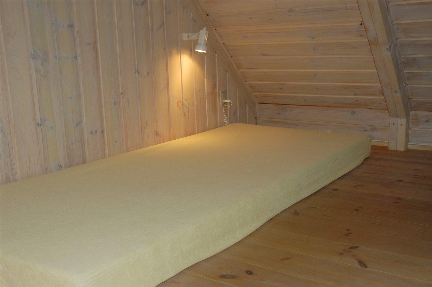 Der er i alt 1 soveværelse. Sovepladserne fordeler sig på: 2 sovepladser i elevationssenge. 2 sovepladser i sovesofa (dobbelt). 2 sovepladser på madrasser. 2 af disse sovepladser befinder sig på husets hems. Derudover er der 1 stk. barneseng.