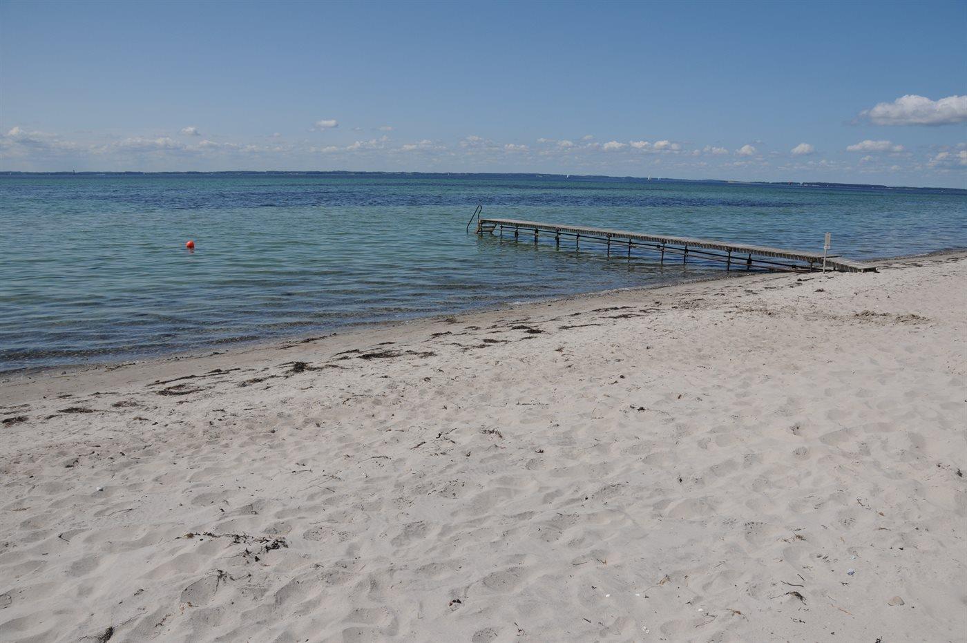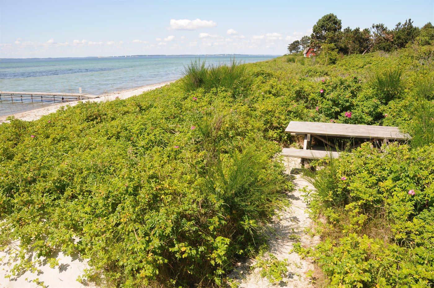 Charmerende, stråtækt sommerhus opført i gammel stil beliggende på en fredet og lukket grund direkte ved Flensborg Fjord. Egen børnevenlig strand og adgang til fælles, privat badebro. Huset er indrettet med hems, som er åben mod opholdsstuen, med havudsigt samt 2 sovepladser. Desuden separat hems med 1 soveplads.