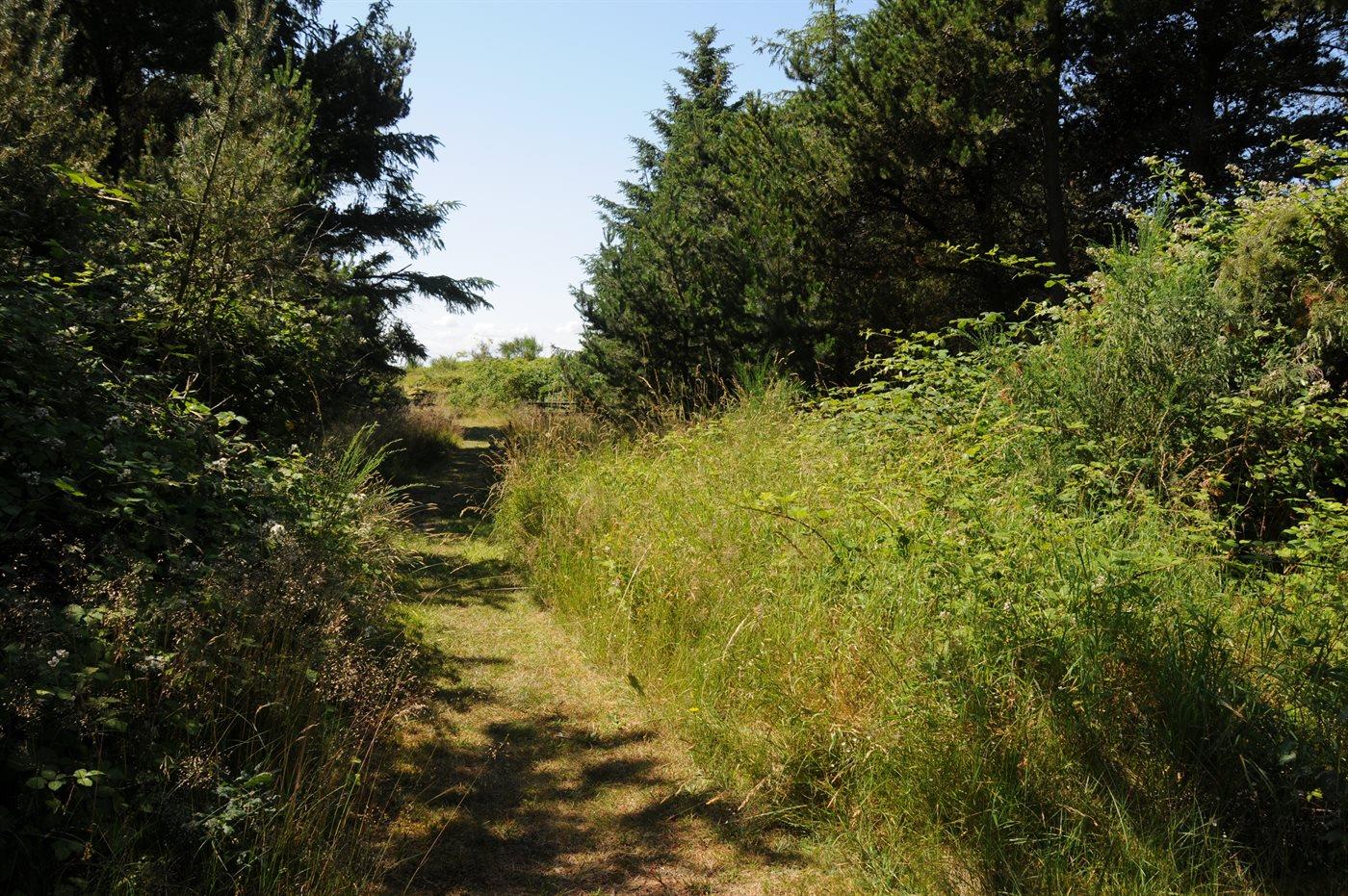 Ferieboligen er beliggende på en 1850 m² stor naturgrund. Der er 75 m til havet. Der er en badebro i nærheden. Nærmeste forretning er beliggende i en afstand af 500 m. Til ferieboligen hører 15 m² terrasseareal. Desuden er der 8 m² overdækket terrasse. Der er redskabsrum. Gynge. Vippe. Parkering ved ferieboligen.