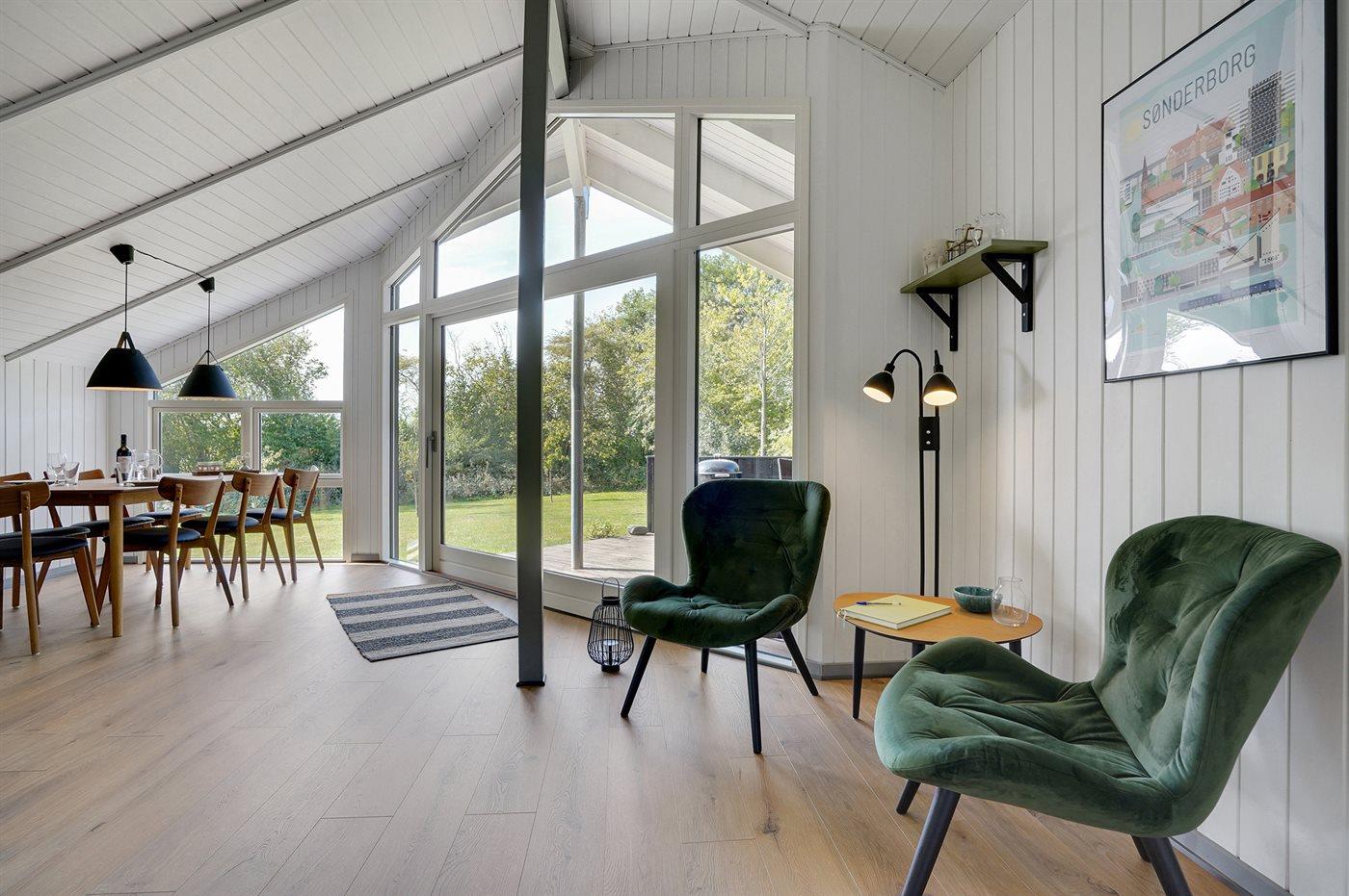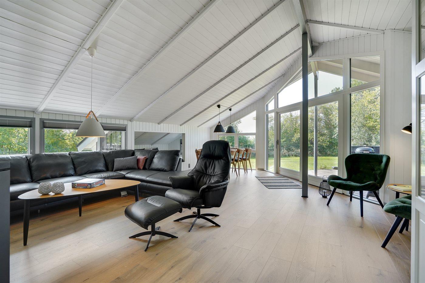 Lyst og hyggeligt sommerhus på Kegnæs med sauna, brændeovn og stor terrasse nær havet.