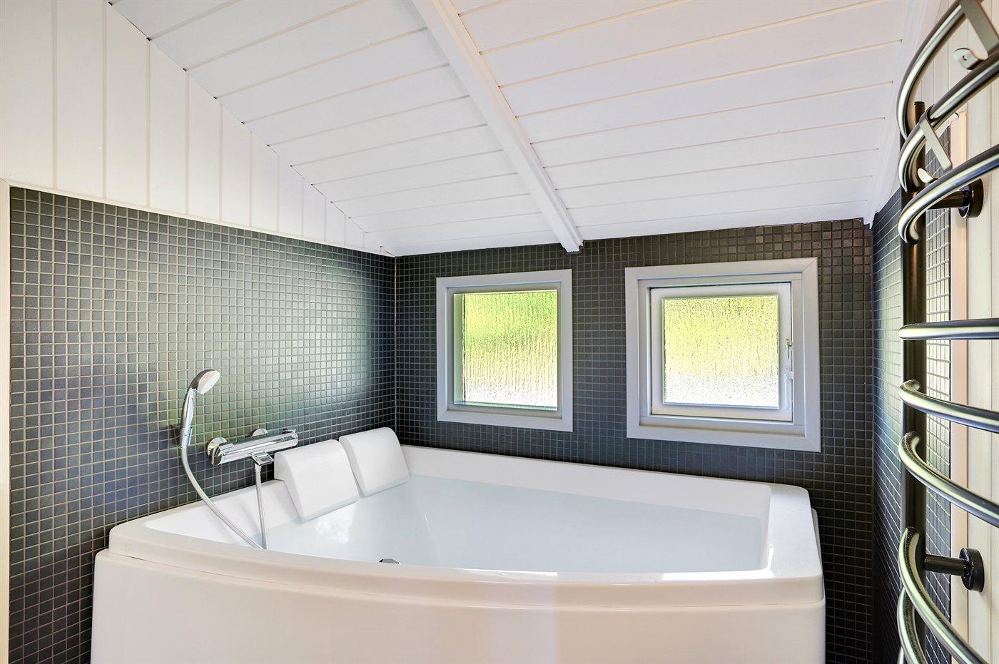 Der er 1 badeværelse med bruseniche og 2 toiletter, heraf 1 gæstetoilet. Der er gulvvarme på 1 badeværelse.. Badekar. I saunaen er der mulighed for afslapning.
