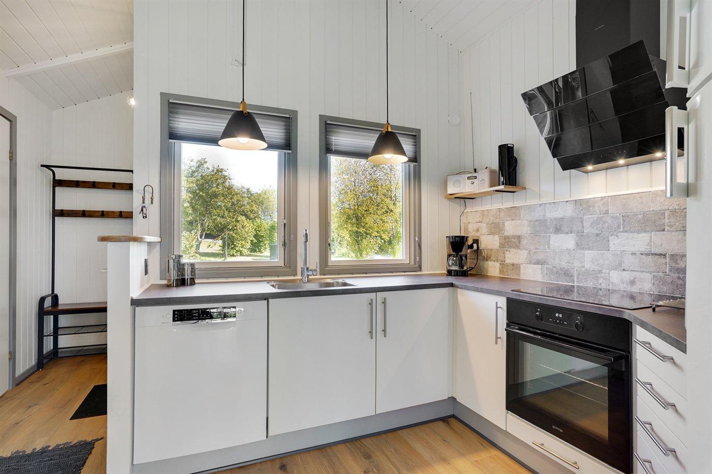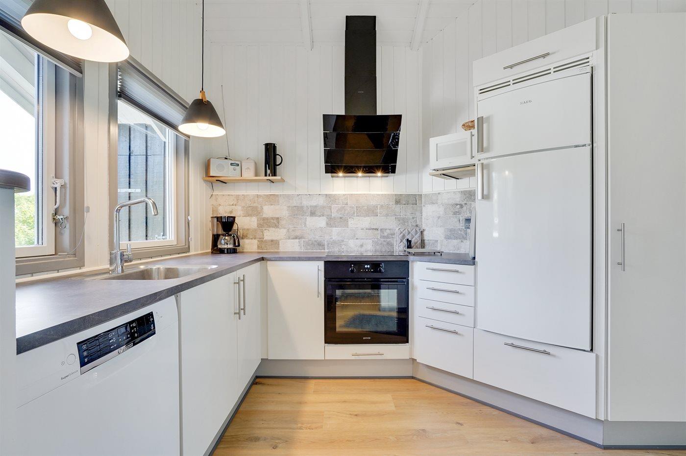 Køkkenet er udstyret med 1 køleskab. Der er 4 induktionskogeplader, varmluftovn, mikrobølgeovn samt opvaskemaskine.