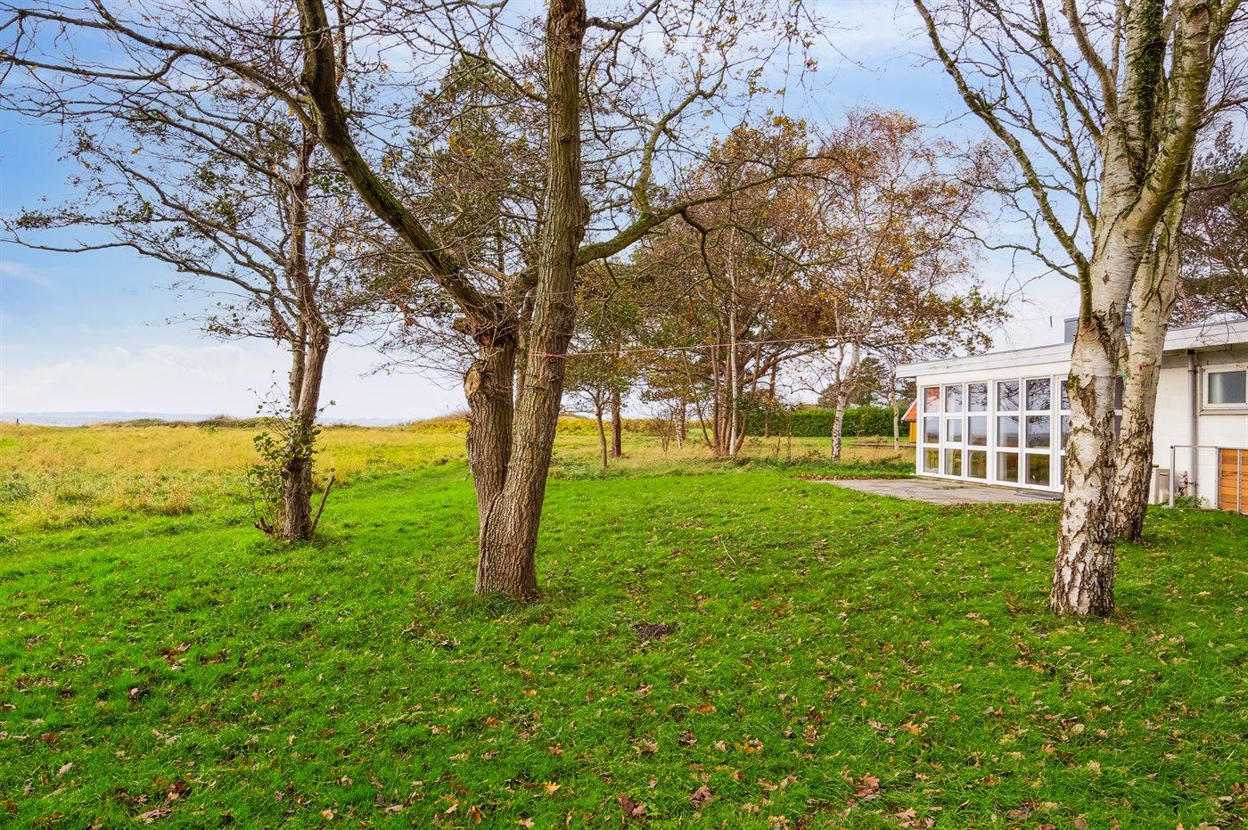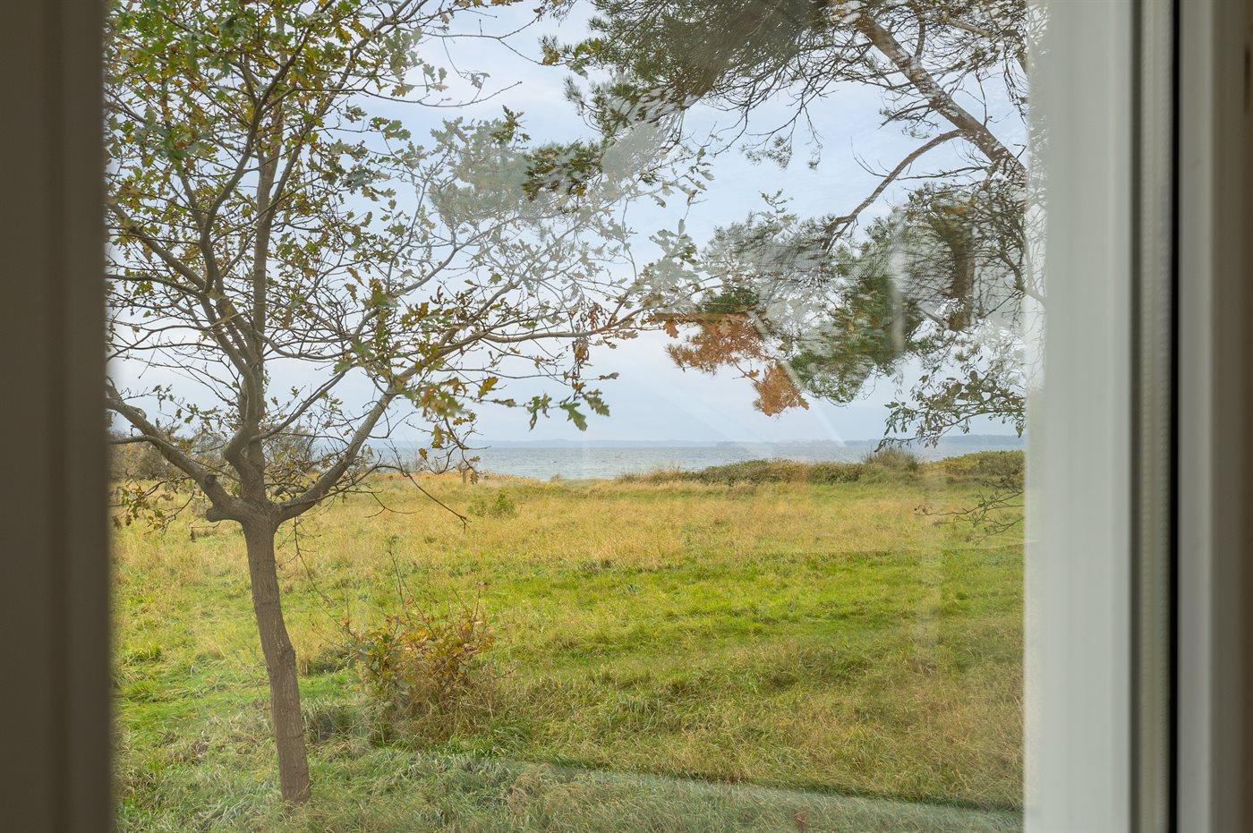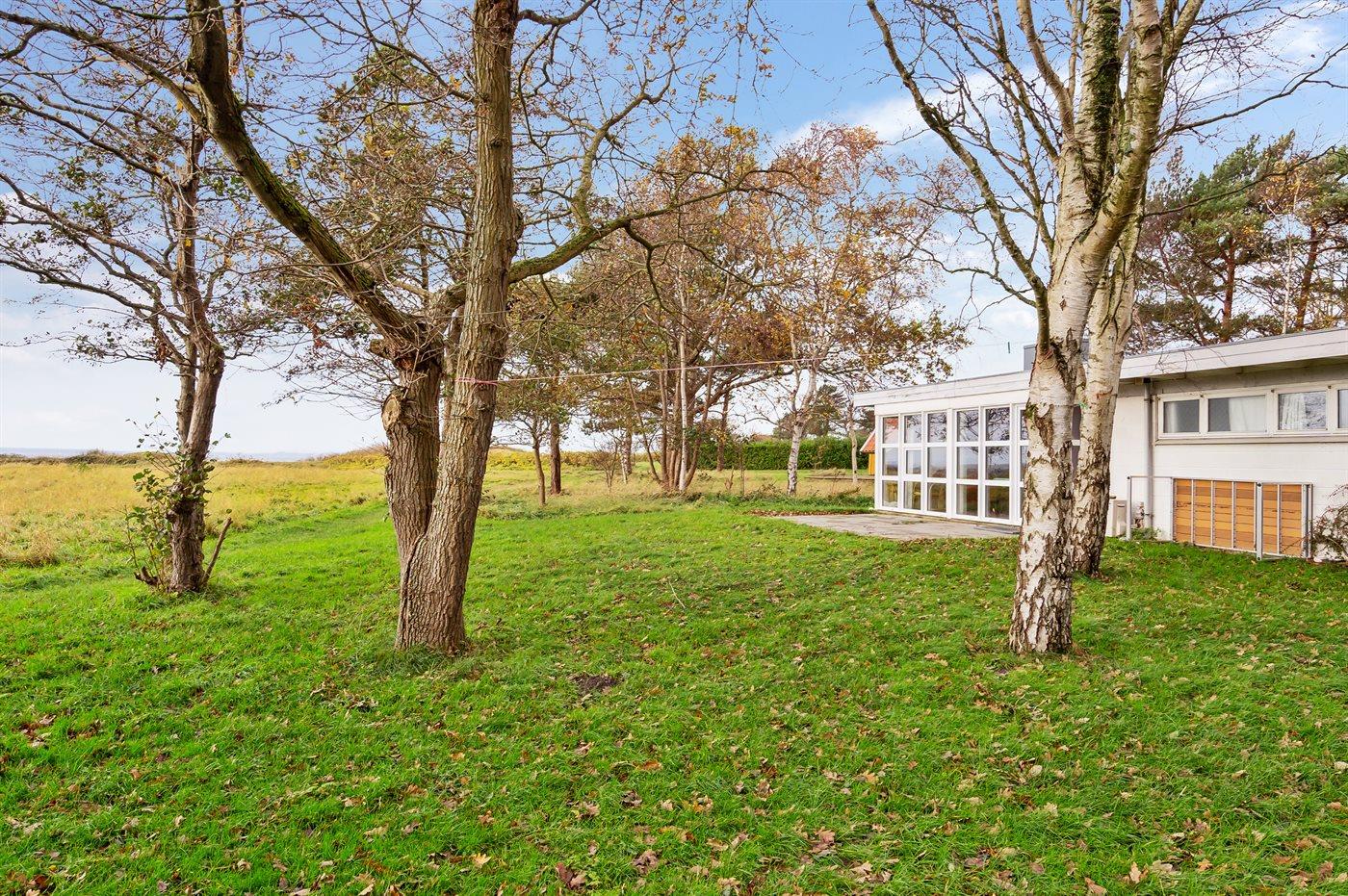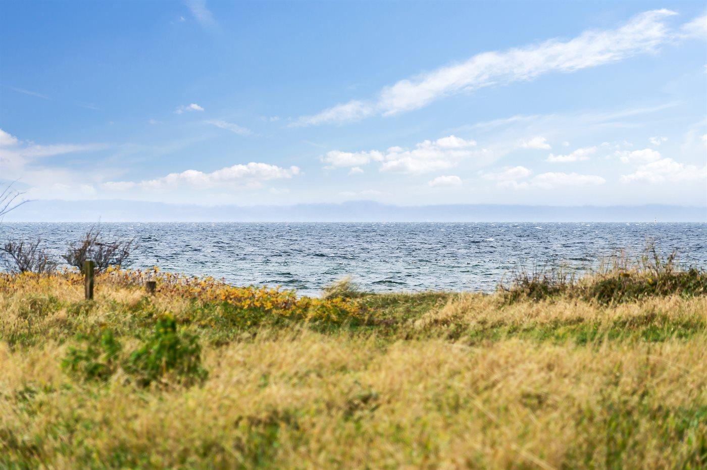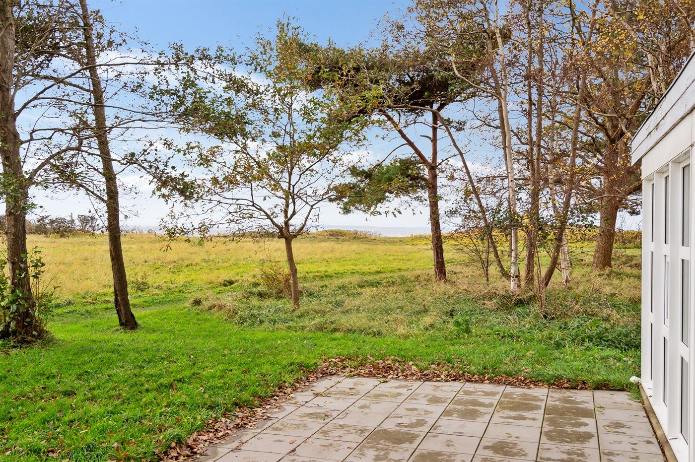 Sommerhus beliggende kun 100 meter fra dejlig badestrand og med udsigt fra hus og grund til vandet.