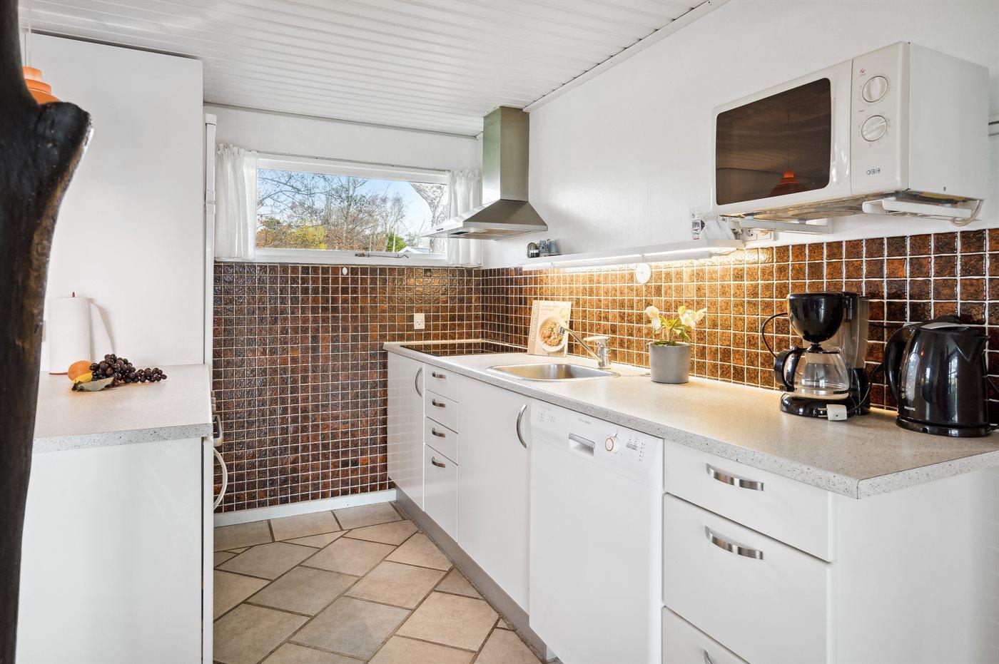 Køkkenet er udstyret med 1 køleskab. Der er 4 keramiske kogeplader, varmluftovn, mikrobølgeovn samt opvaskemaskine.