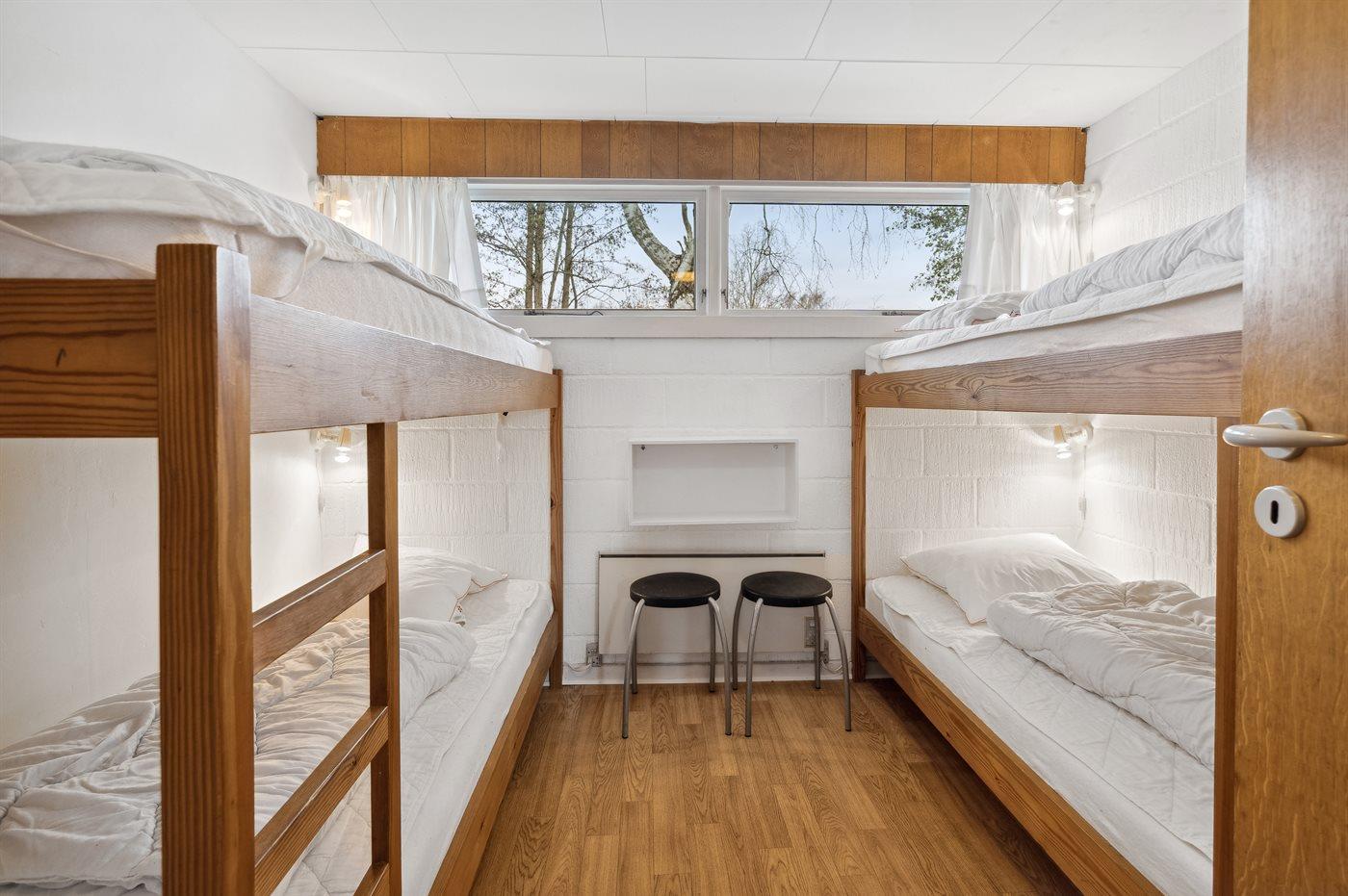 Der er i alt 3 soveværelser. Sovepladserne fordeler sig på: 2 sovepladser i dobbeltseng. 2 sovepladser i enkeltsenge. 4 sovepladser i køjesenge. Derudover er der 1 stk. barneseng.