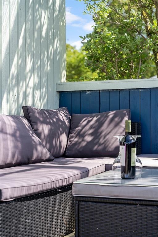 Allerede når du træder ind i huset, mærker du den gode stemning. De lyse og venlige rum er indrettet med hyggelige møbler og personlige detaljer, som straks inviterer dig til at finde ro og nyde ferien i et hjemligt miljø. Det åbne opholdsrum byder på et fint køkkenhjørne, spiseplads og en dejlig stue, hvor du kan sætte dig godt til rette med en kop kaffe og kigge direkte ud over vandet. Store vinduer trækker lyset og udsigten ind i rummet, og her er skabt en atmosfære, der giver lyst til at blive hængende lidt længere – måske med et brætspil, en god film eller bare en stille stund i sofaen. Det er sommerhushygge, når det er bedst.