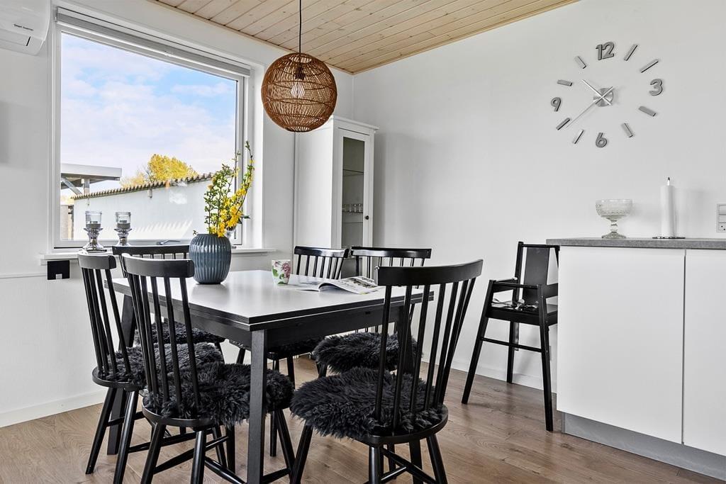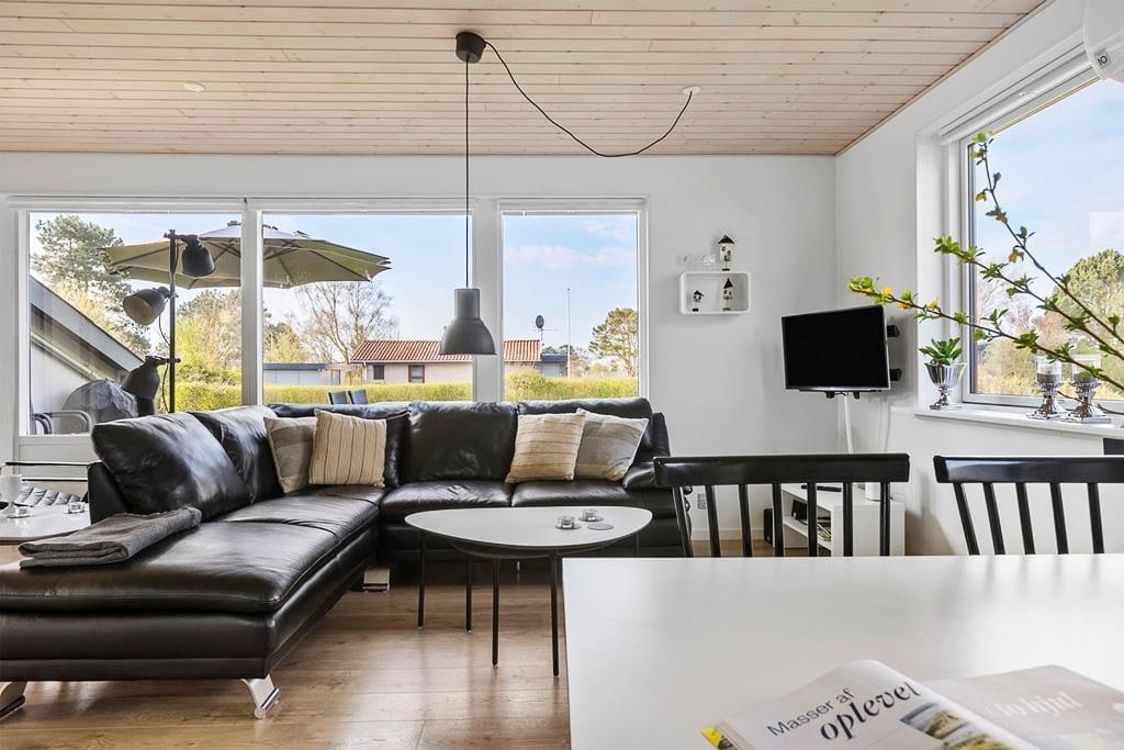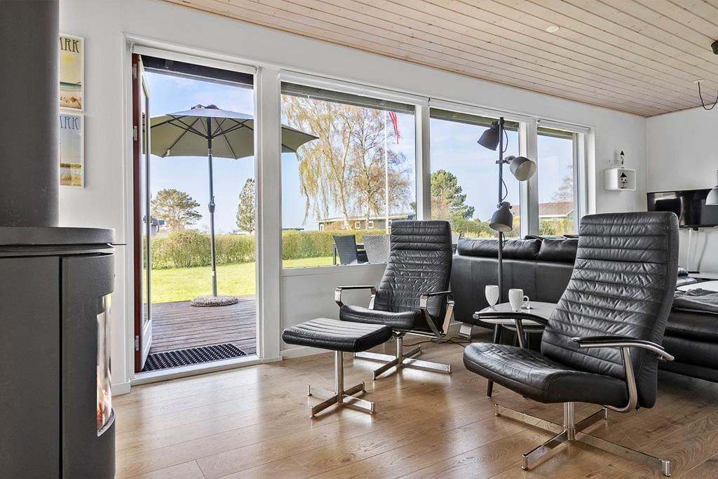 Indenfor mødes du af en lys og indbydende atmosfære. Sommerhuset er indrettet med komfortable møbler og en brændeovn, der skaber varme og hygge på kølige aftener. Køkkenet er veludstyret og åbent mod stuen, hvilket gør det ideelt til fælles måltider og samvær. De tre soveværelser sikrer en god nats søvn til hele familien.