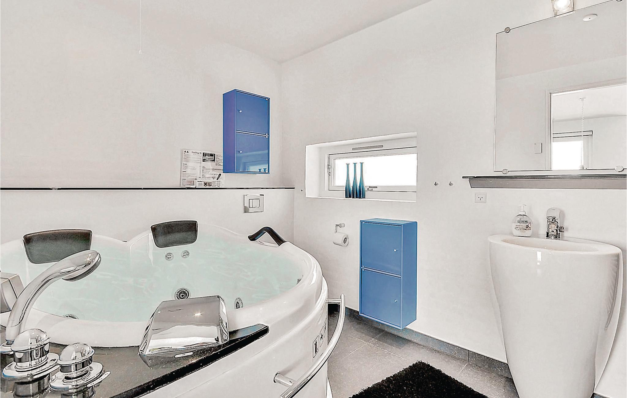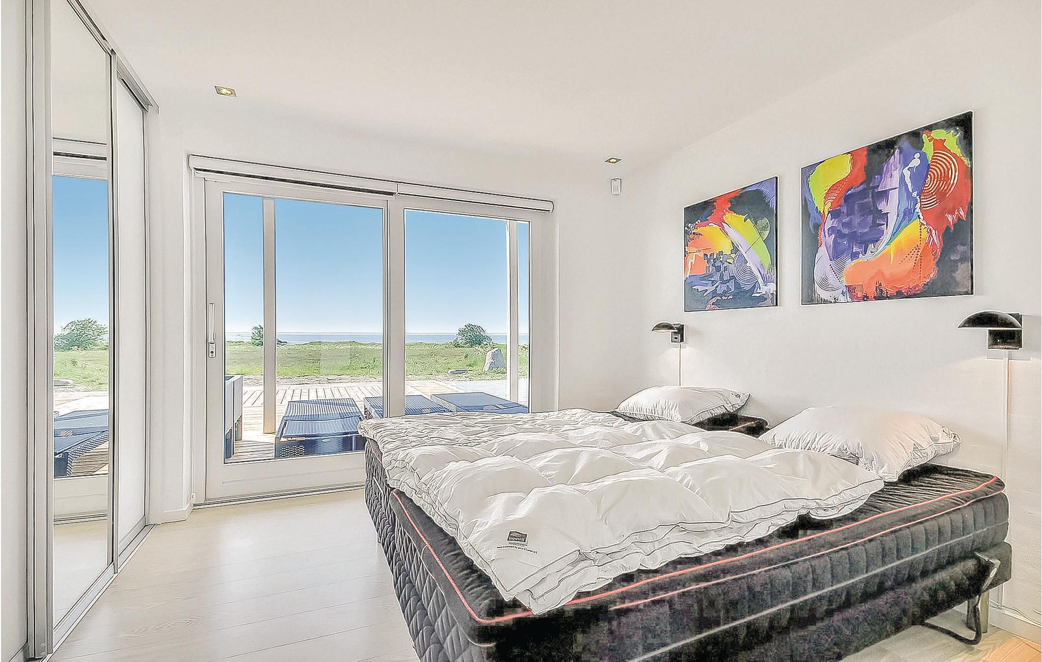 Allerede når I ankommer til huset, mærker I, at I er kommet til noget særligt. Her er der kræset for detaljerne og beliggenheden er hel unik med fuld panorama over havet. Huset er opført i moderne stil og design, som simpelthen skal opleves. Boligen indeholder bl.a. en stor, hyggelig opholdsstue i åben forbindelse til køkkenet, hvor pejsen giver den rette stemning. Soveværelserne har elevationssenge og fra master bedroom er der adgang til eget badeværelse. Hertil kommer et stort badeværelse med spa og sauna. På den store grund kan I kan boltre jer, og når I kommer fra en dukkert i havet, kan I skylle jer under den udendørs bruser. Der er en stor delvis overdækket terrasse, hvor I både kan nyde solen og skyggen samt hygge jer omkring grillen.