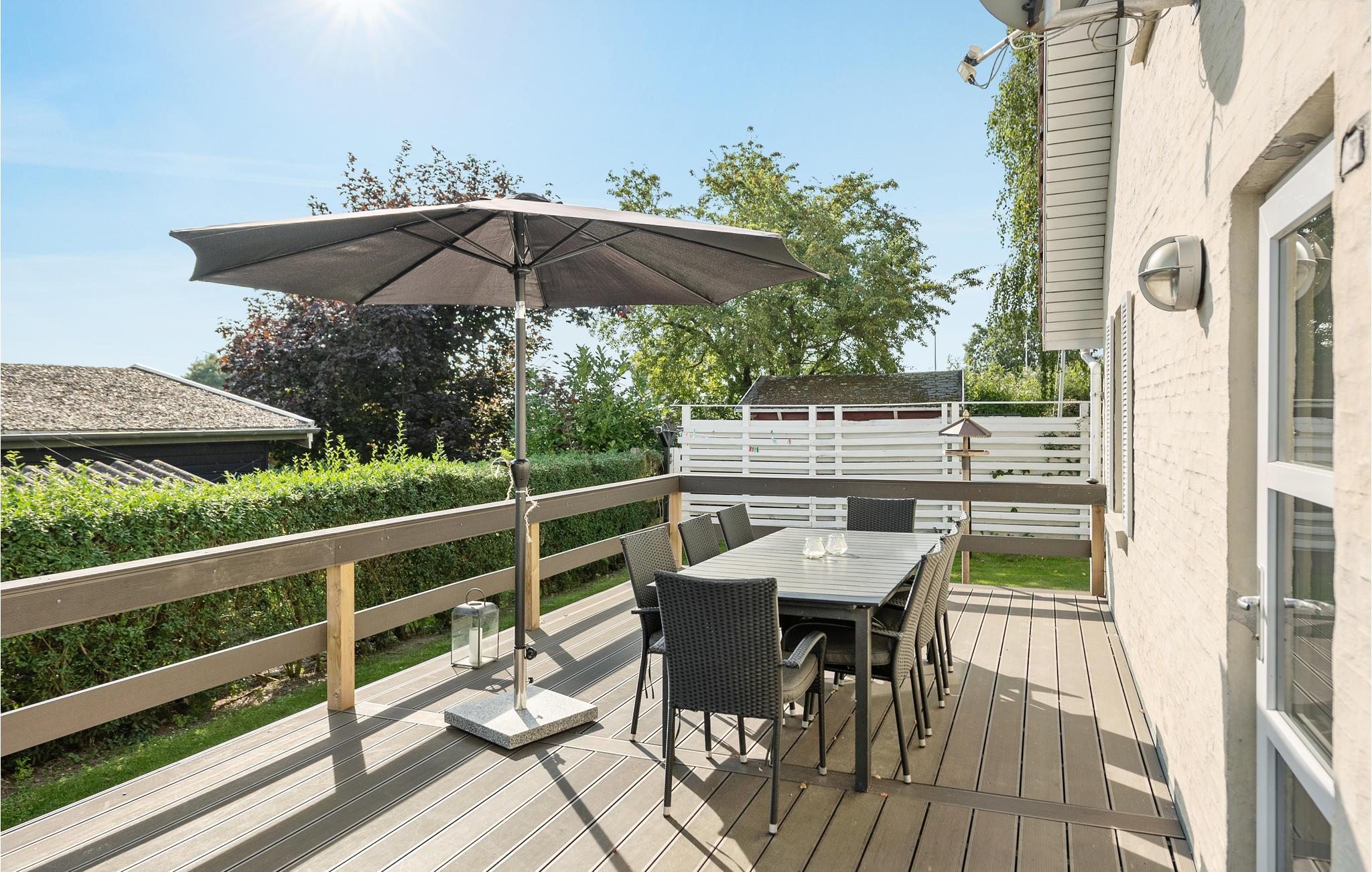 På den dejlige halvø Kegnæs, som byder på en familievenlig sandstrand og gode fiskemuligheder ligger dette pragtfulde feriehus lige ned til stranden. Fra huset og terrasserne er der en fantastisk udsigt over havet. Stedet er desuden et paradis for windsurfere. I haven er der en dejlig lys terrasse, ligesom der også er en terrasse på første sal med en fantastisk udsigt over vandet. I huset er der alle moderne bekvemmeligheder til rådighed såvel i køkkenet og stuen som i det veludstyrede badeværelse, der er indrettet med spabad og sauna. Huset er velegnet til to familier.