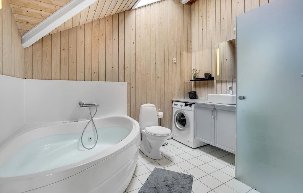 Der er lagt op til en herlig ferie med familien i dette rummelige, komfortable træhus. I det store, åbne fællesrum finder I både et veludstyret køkken og en hyggelig stue, og indretningen præges af lyse træelementer, der sikrer en varm og hjemlig atmosfære. Ved brændeovnens lys og varme kan I se frem til mange hyggelige aftener med brætspil, krydsord eller en god film.