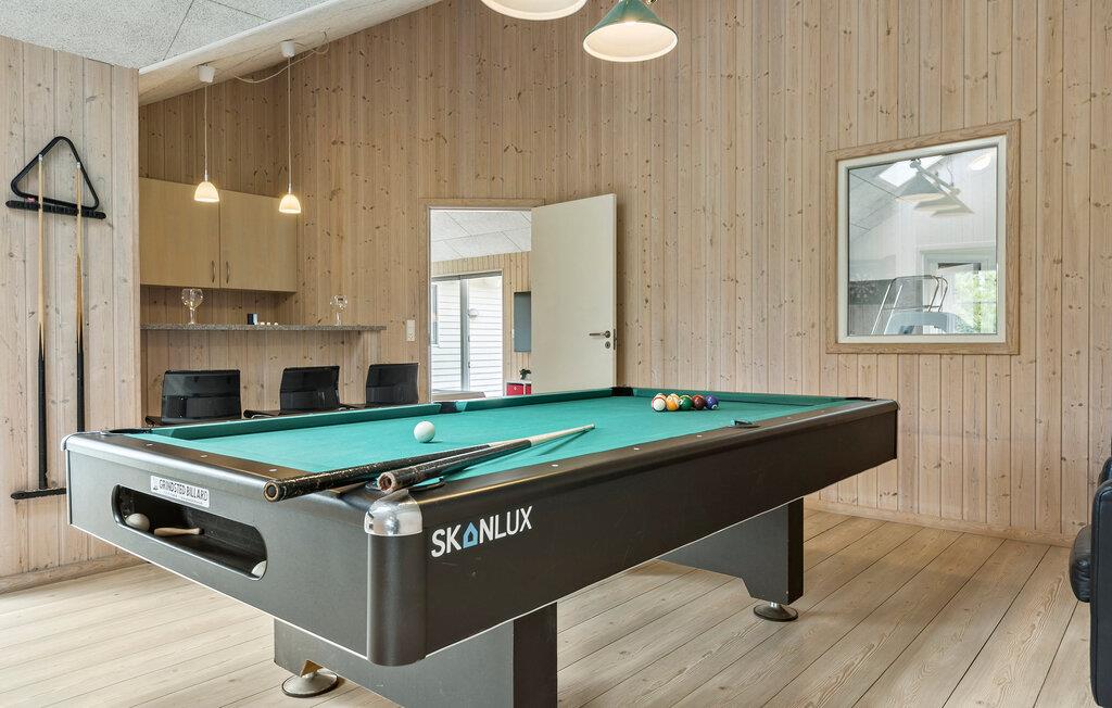 Velkommen til Kegnæs og en uforglemmelig ferie i det sønderjyske. Her venter dette hus, som har god plads til flere familier eller en større rejsegruppe. Huset er udstyret med en række faciliteter, der er med til at sikre jer en hyggelig ferie. Begynd dagene med god tid til morgenmaden og læg en plan for dagen, inden I tager ud på eventyr. Skulle I trænge til en velfortjent pause, er der både spa og sauna i huset, og poolen har modstrømssystem, så I kan også komme i vandet, hvis vejret svigter. På de kølige dage er det ekstra stemningsfuldt med ild i brændeovnen, og så kan I også altid snuppe en hyggelig dyst i billard, bordtennis eller dart i husets aktivitetsrum.