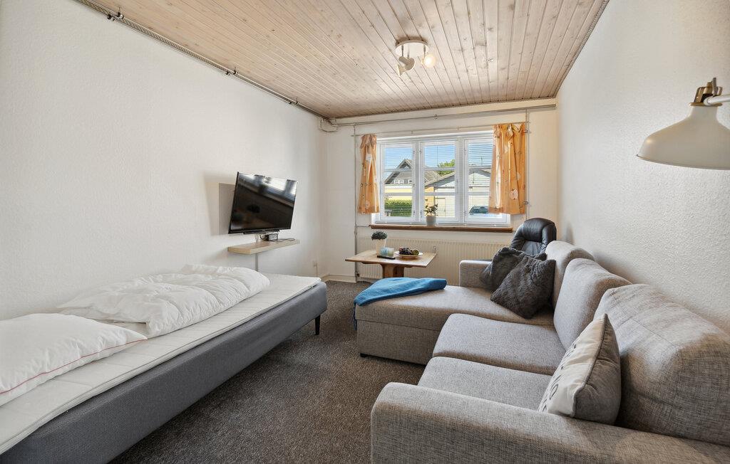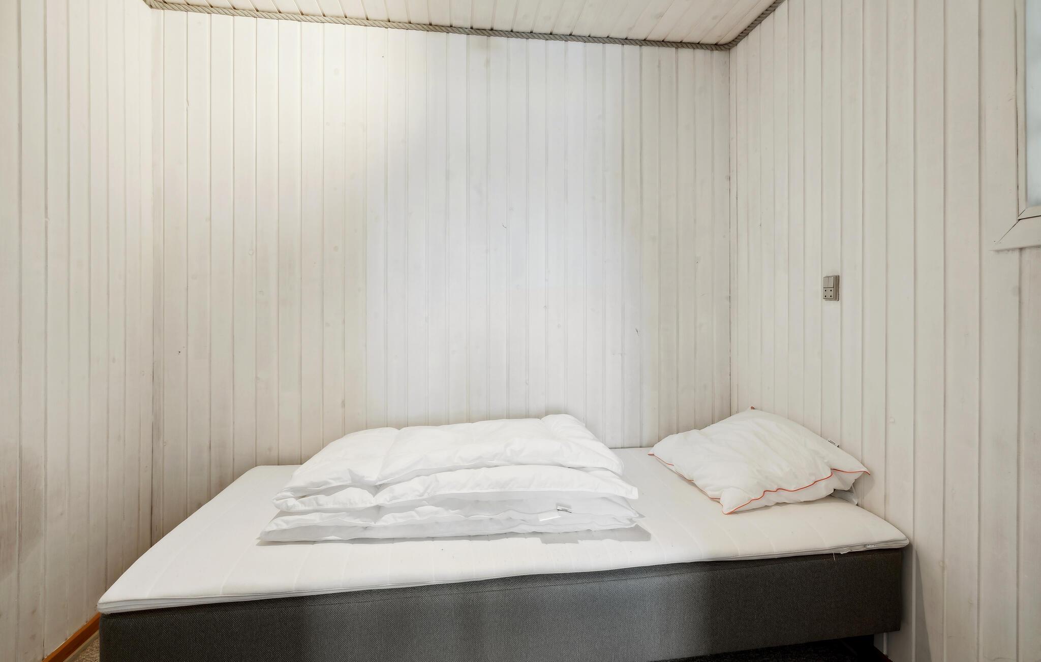 Læg hverdagen bag jer og nyd en ubekymret ferie i dette feriehus, der lægger op til et afslappende ophold tæt på naturen og kysten. Træd ind i det lyse interiør, der er noget særligt med sit rene design og hyggelige boligkoncept. Find jer godt til rette i den åbne stue under det indbydende træloft. Læn jer tilbage i sofaen og se en god serie på tv'et. Tilbered lækre måltider i køkkenet og find sammen om bordet til samtale, brætspil eller en hyggelig middag.