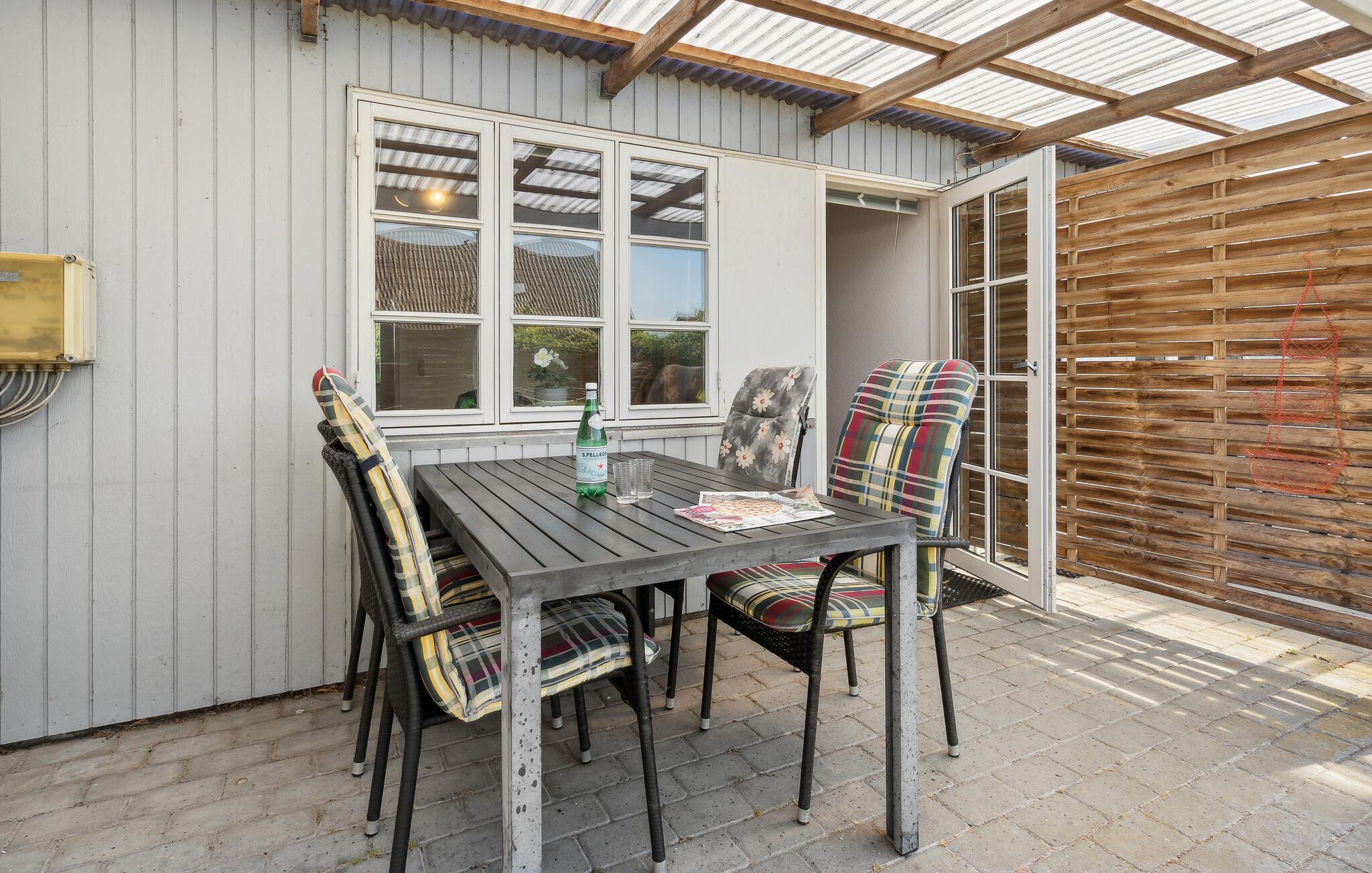 Terrassen lige foran huset lægger op til at tilbringe afslappende stunder udendørs. Planlæg jeres næste feriedag i fred og ro eller se børnene lege på legepladsudstyret. Om aftenen kan I nyde den fredfyldte atmosfære med et glas vin og en god samtale.