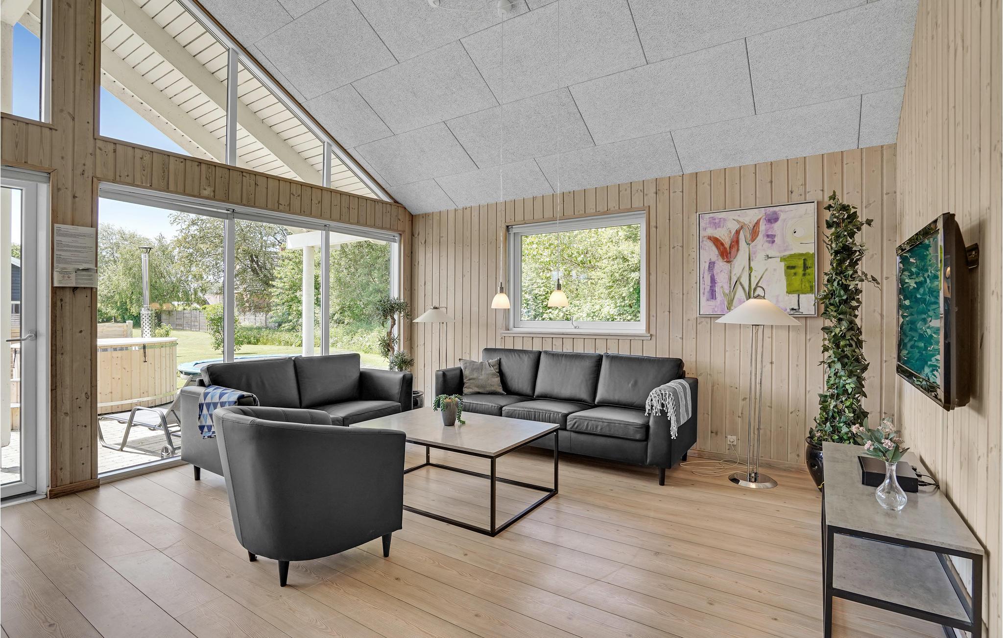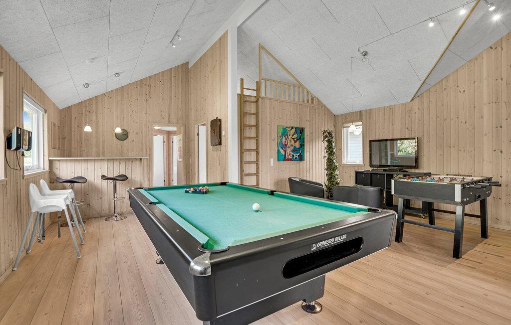 Velkommen til dette lyse, indbydende hus, som er den perfekte ramme om en familieferie. Huset har brede store vinduer ud mod haven, så I kan hele tiden nyde udsigten til de grønne omgivelser, når I nyder en afslappende stund. Efter dagens eventyr kan I læne jer tilbage i saunaen og spabadet - eller koldtvandskarret - snuppe en svømmetur med børnene i poolen, tænde op i stuens brændeovn eller samles om en rask dyst i billard.