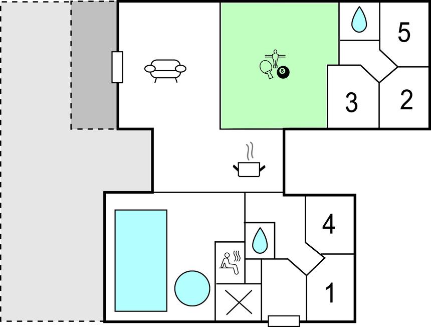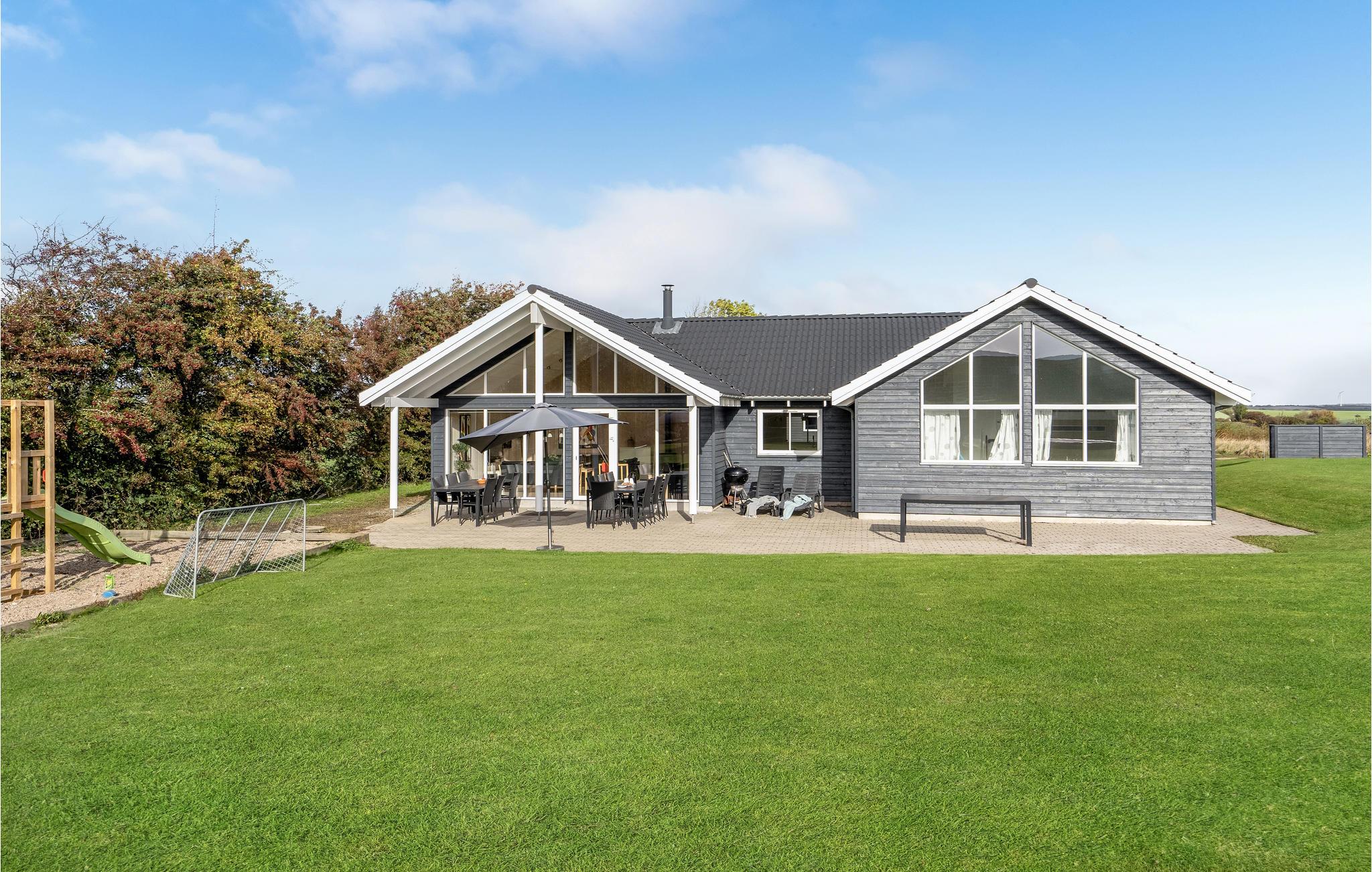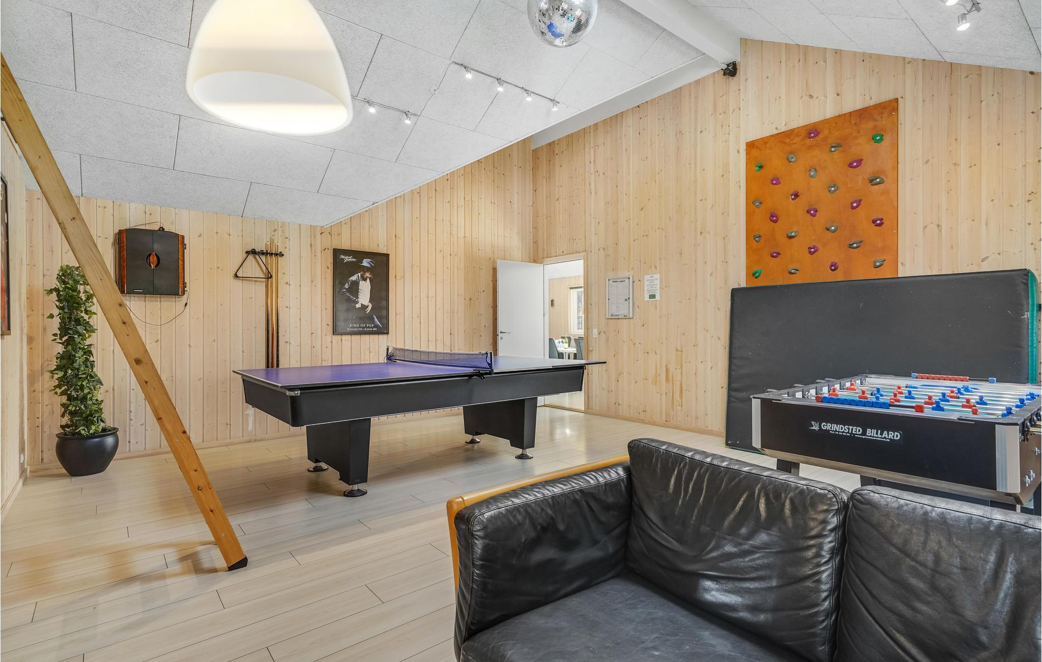 Huset er yderst velindrettet med dejlige, komfortable møbler og lyst interiør. Til børnene er der lavet en indendørs klatrevæg (med madras under), og aktivitetsrummet inviterer til dyst i husets mange aktiviteter. Tilbring mange timer med badesjov og afslapning i poolrummet, hvor børnene vil elske rutsjebanen, mens de voksne kan slappe af i spabadet. Den store, lækre terrasse er et oplagt sted at samles omkring feriemiddagene der evt. tilberedes på grillen. Huset ligger på en skøn naturgrund med god plads til boldspil og leg, børnene vil få mange timer til at gå på gyngerne og rutsjebanen.