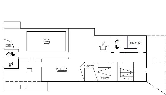 Der er i alt 4 soveværelser. Sovepladserne fordeler sig på: 4 sovepladser i dobbeltsenge. 2 sovepladser i enkeltsenge. 4 sovepladser i køjesenge. Derudover er der 1 stk. barneseng.