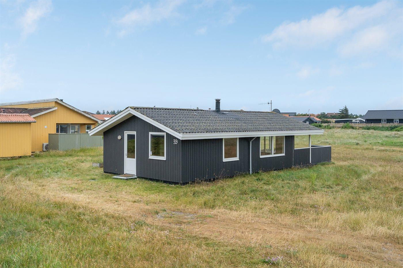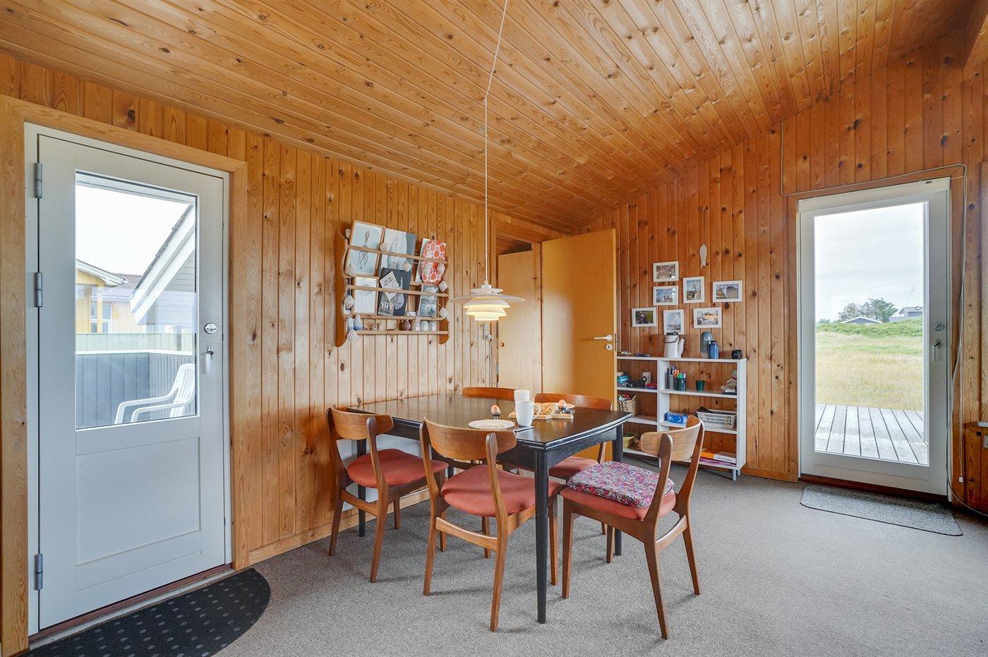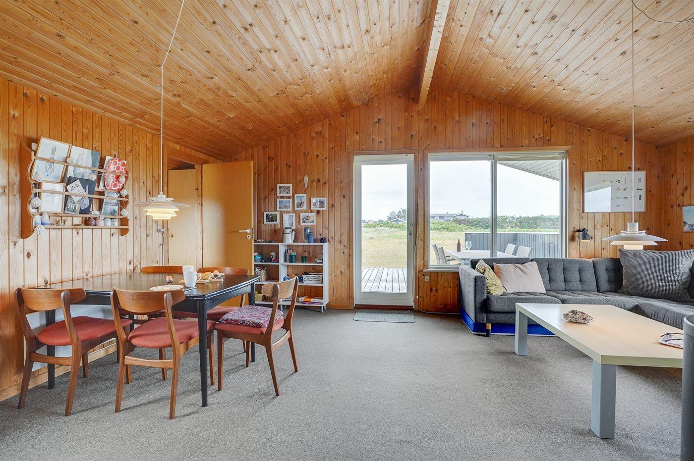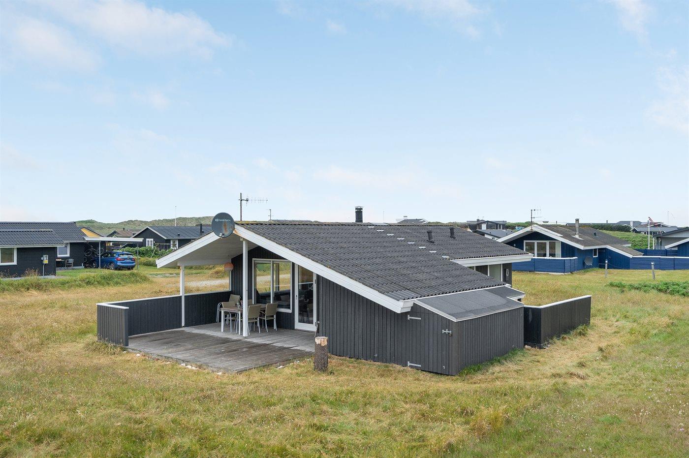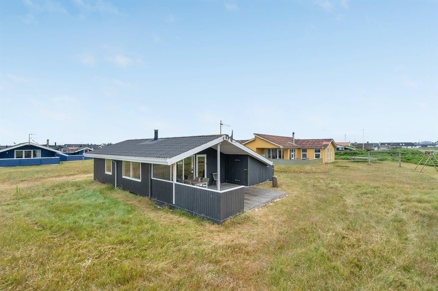 Hyggeligt træsommerhus i Klitmøller med brændeovn, stor terrasse og tæt på havet.
