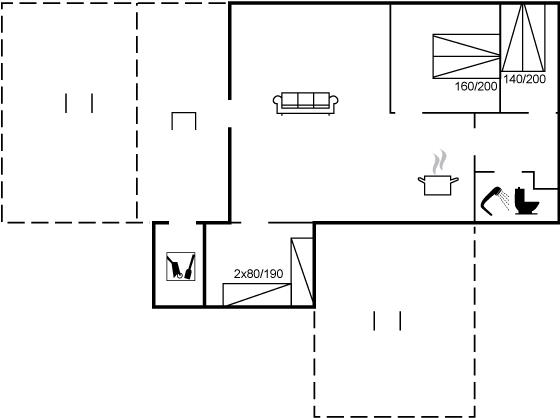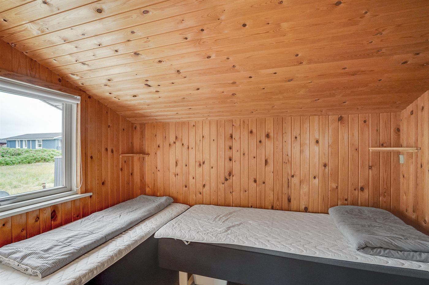 Der er i alt 3 soveværelser. Sovepladserne fordeler sig på: 4 sovepladser i dobbeltsenge. 2 sovepladser i enkeltsenge.