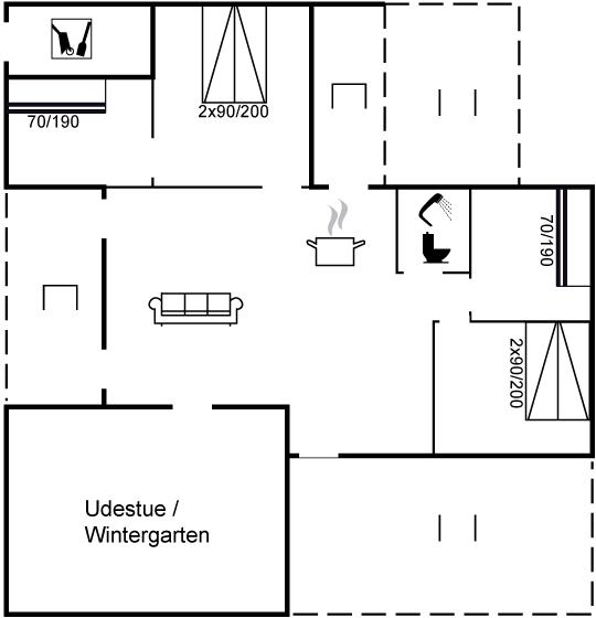 Der er i alt 4 soveværelser. Sovepladserne fordeler sig på: 4 sovepladser i dobbeltsenge. 4 sovepladser i køjesenge.