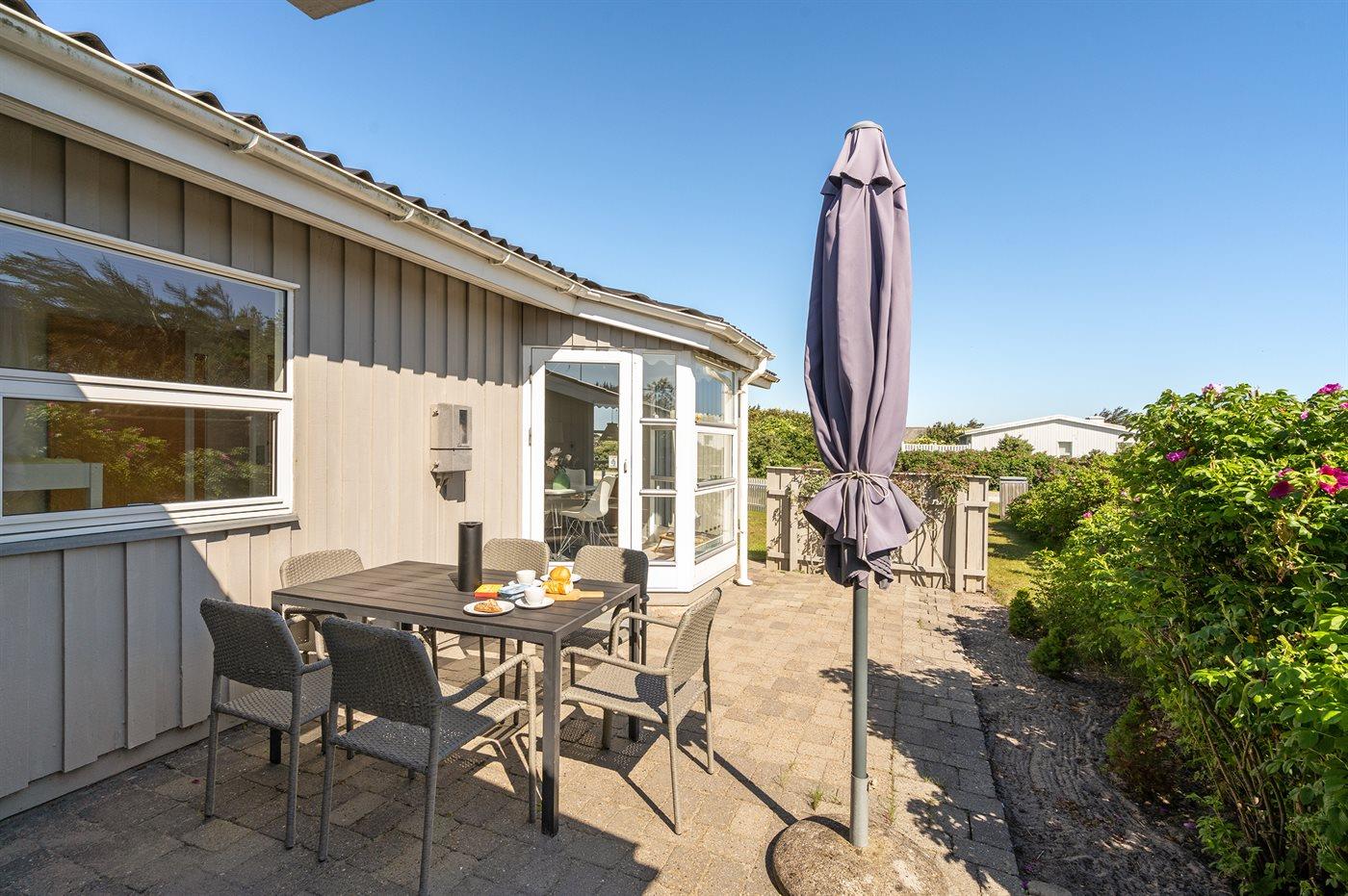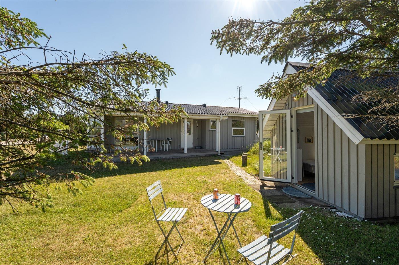 Der findes endvidere et rummeligt udhus ned havemøbler, mikroovn og grill.