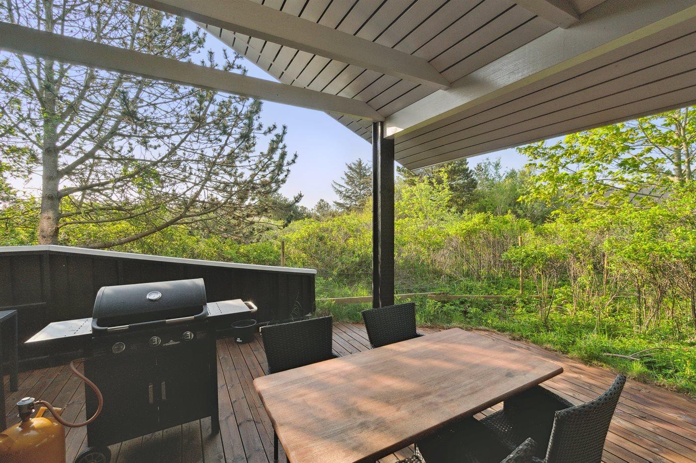 Ferieboligen er beliggende på en 850 m² stor naturgrund. Der er 850 m til havet. Nærmeste forretning er beliggende i en afstand af 600 m. Der er en golfbane i en afstand af 5000 m. Til ferieboligen hører åbent terrasseareal. Desuden er der overdækket terrasse. Grill til rådighed. Parkering ved ferieboligen.
