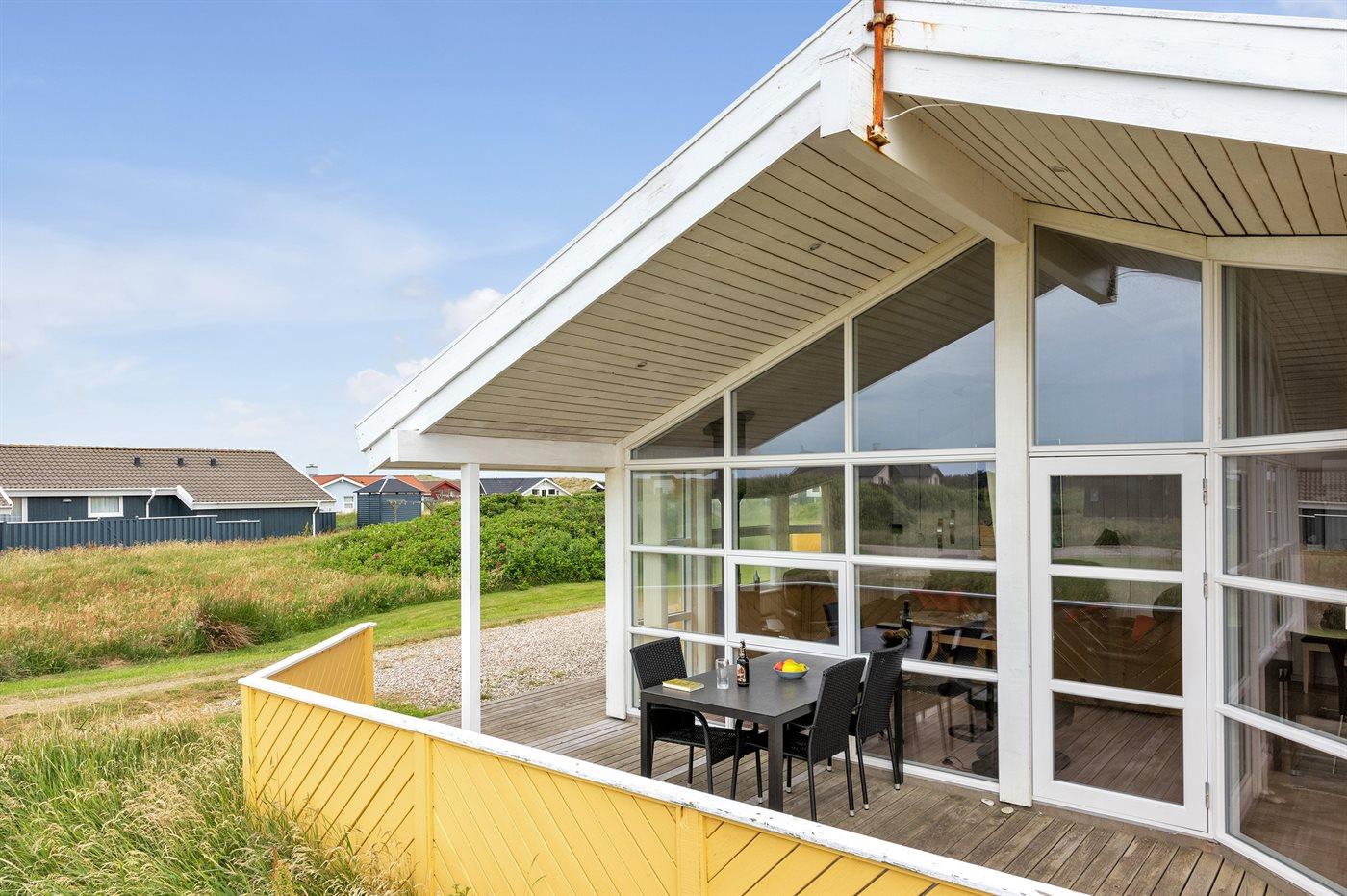 Ferieboligen er beliggende på en 1300 m² stor havegrund. Der er 200 m til havet. Nærmeste forretning er beliggende i en afstand af 1000 m. Til ferieboligen hører i alt 60 m² lukket terrasse. Heraf er 10 m² overdækket. Gynge. Sandkasse. Grill til rådighed. Parkering ved ferieboligen.