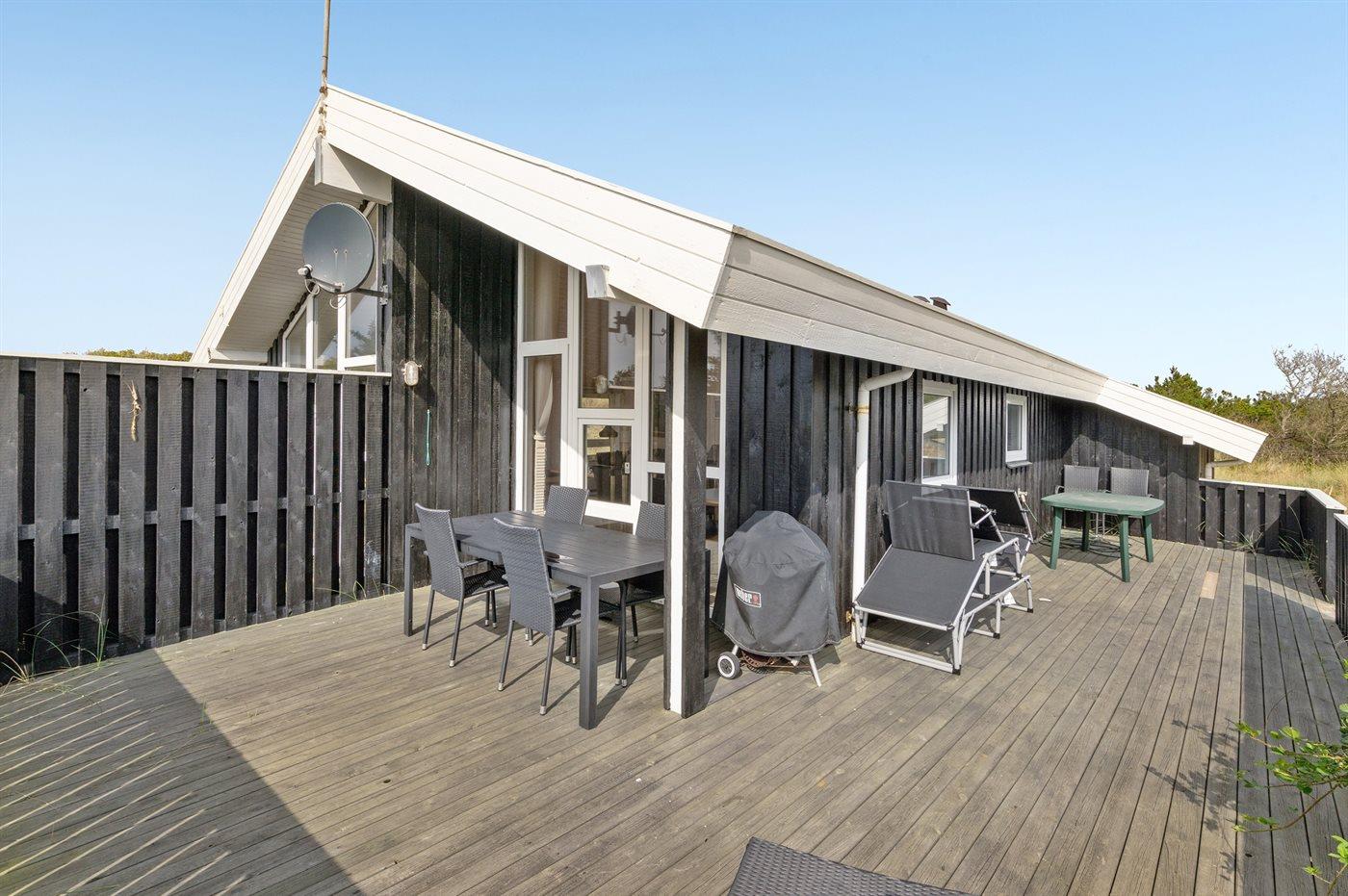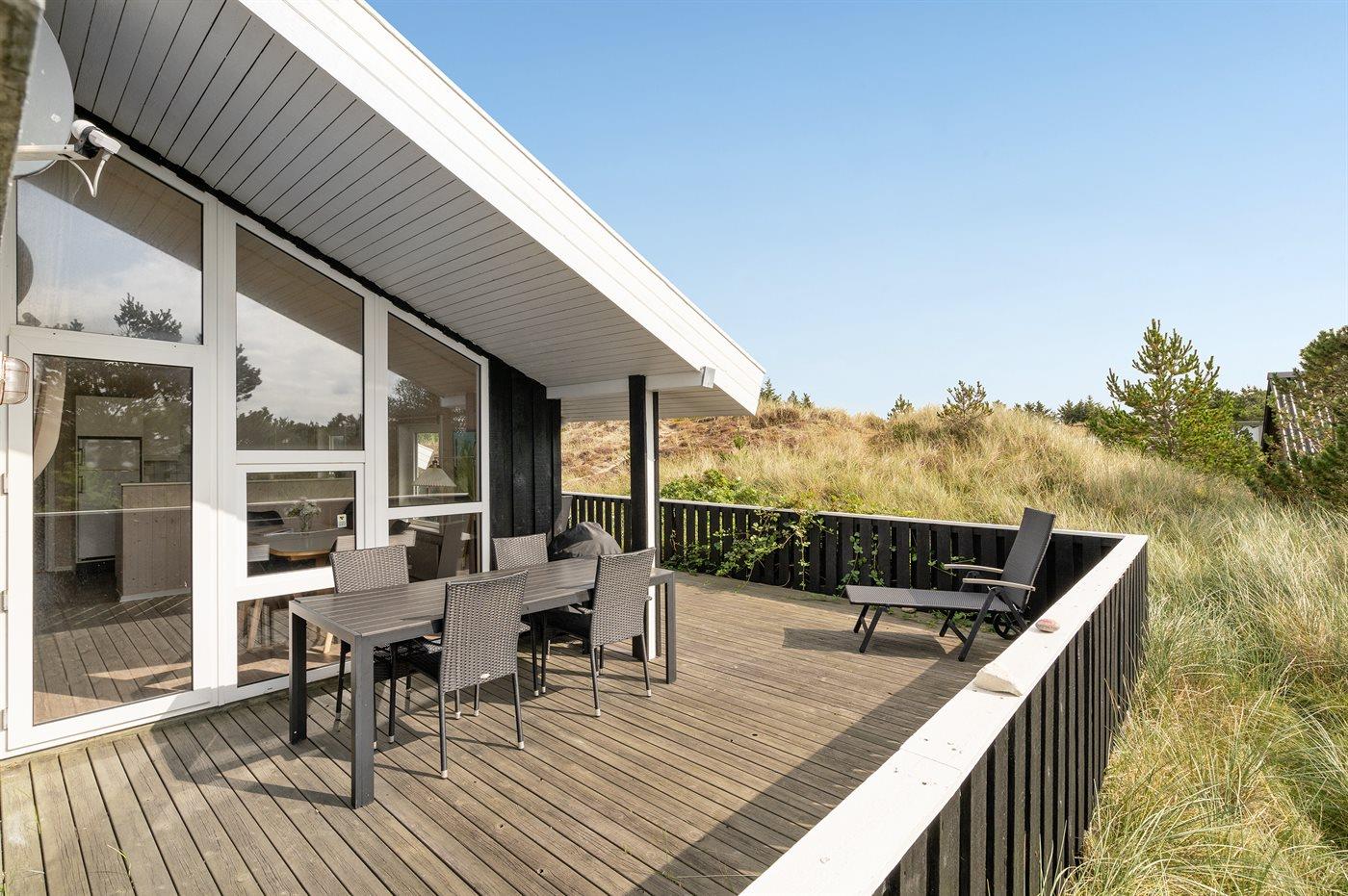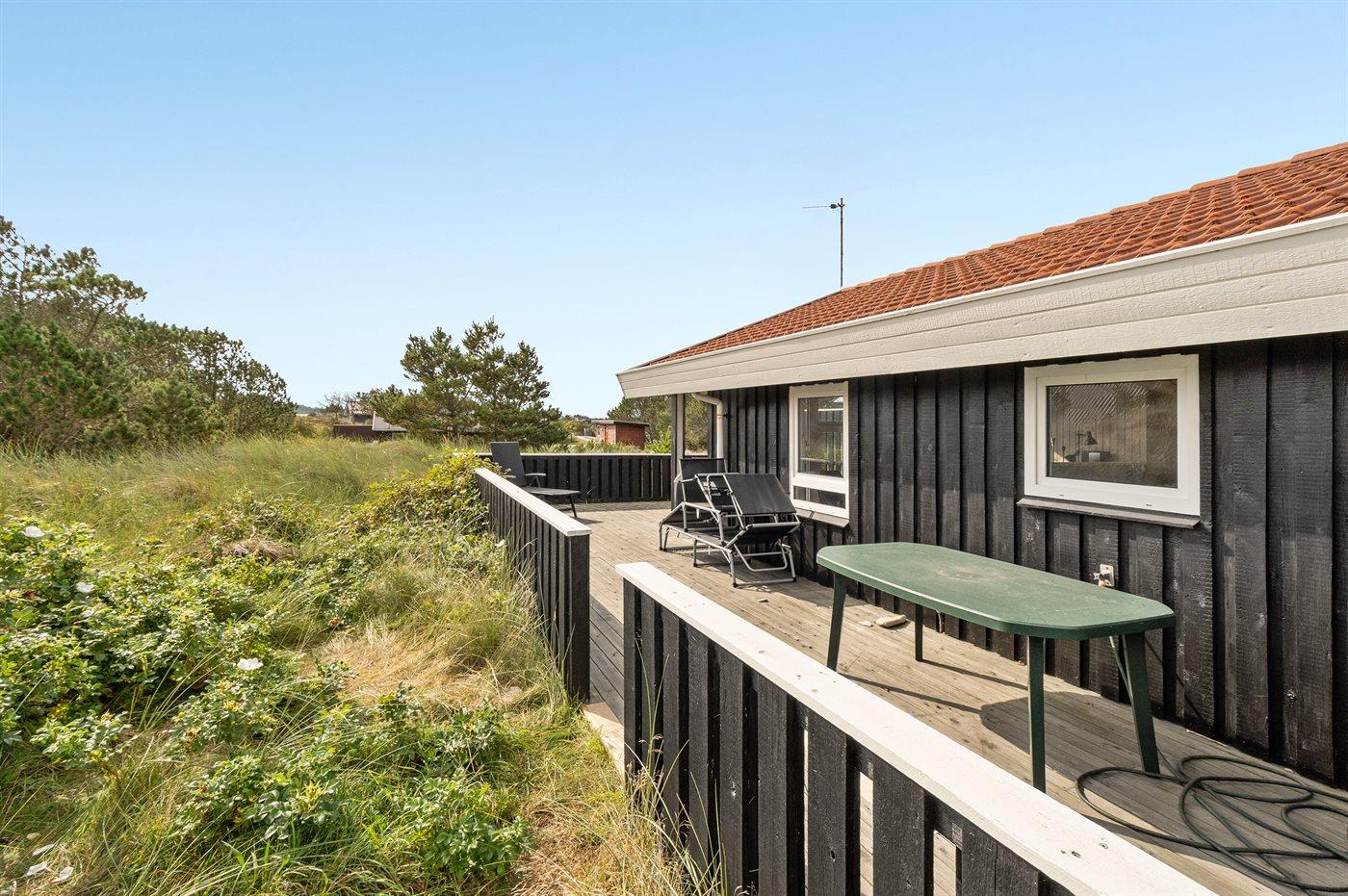Ferieboligen er beliggende på en 1745 m² stor klitgrund. Der er 500 m til havet. Nærmeste forretning er beliggende i en afstand af 800 m. Til ferieboligen hører 45 m² terrasseareal. Desuden er der 5 m² overdækket terrasse. Grill til rådighed. Parkering ved ferieboligen.