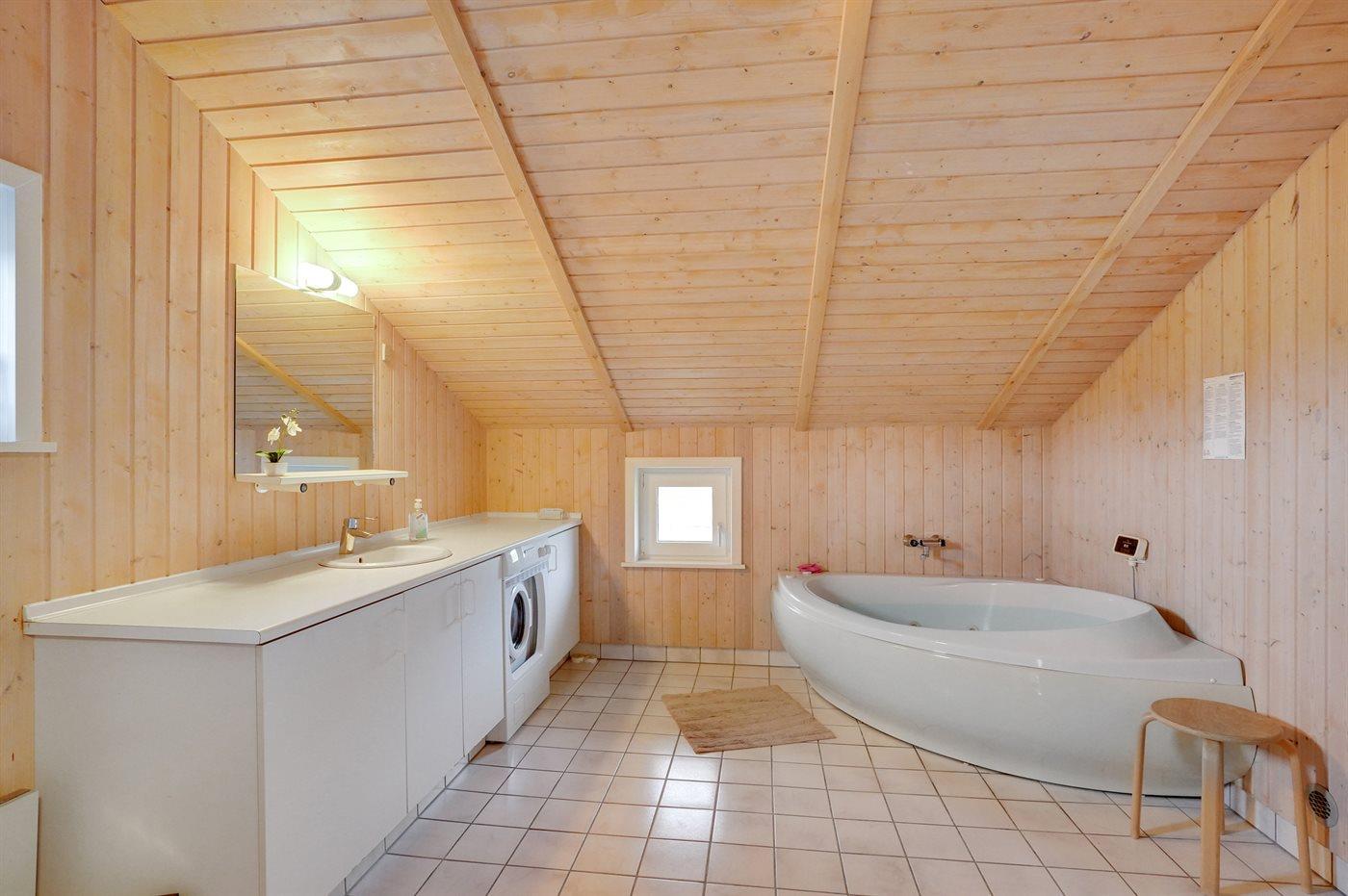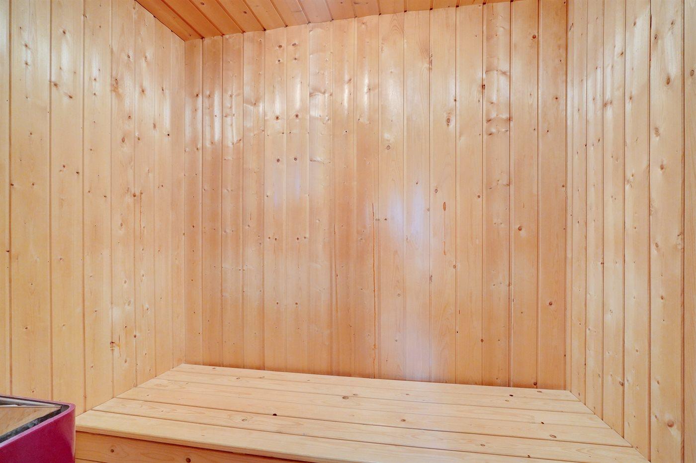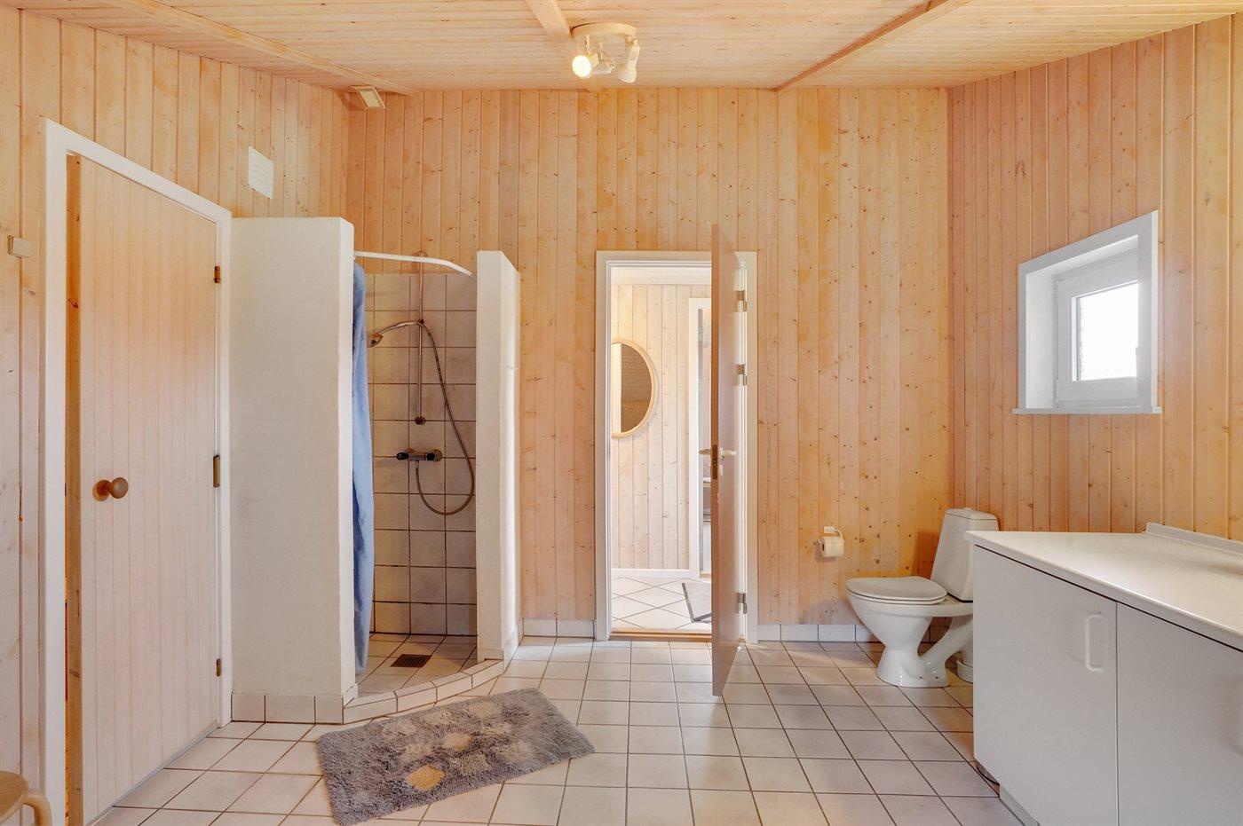 Der er 1 badeværelse med bruseniche og 1 toilet. I saunaen er der mulighed for afslapning.