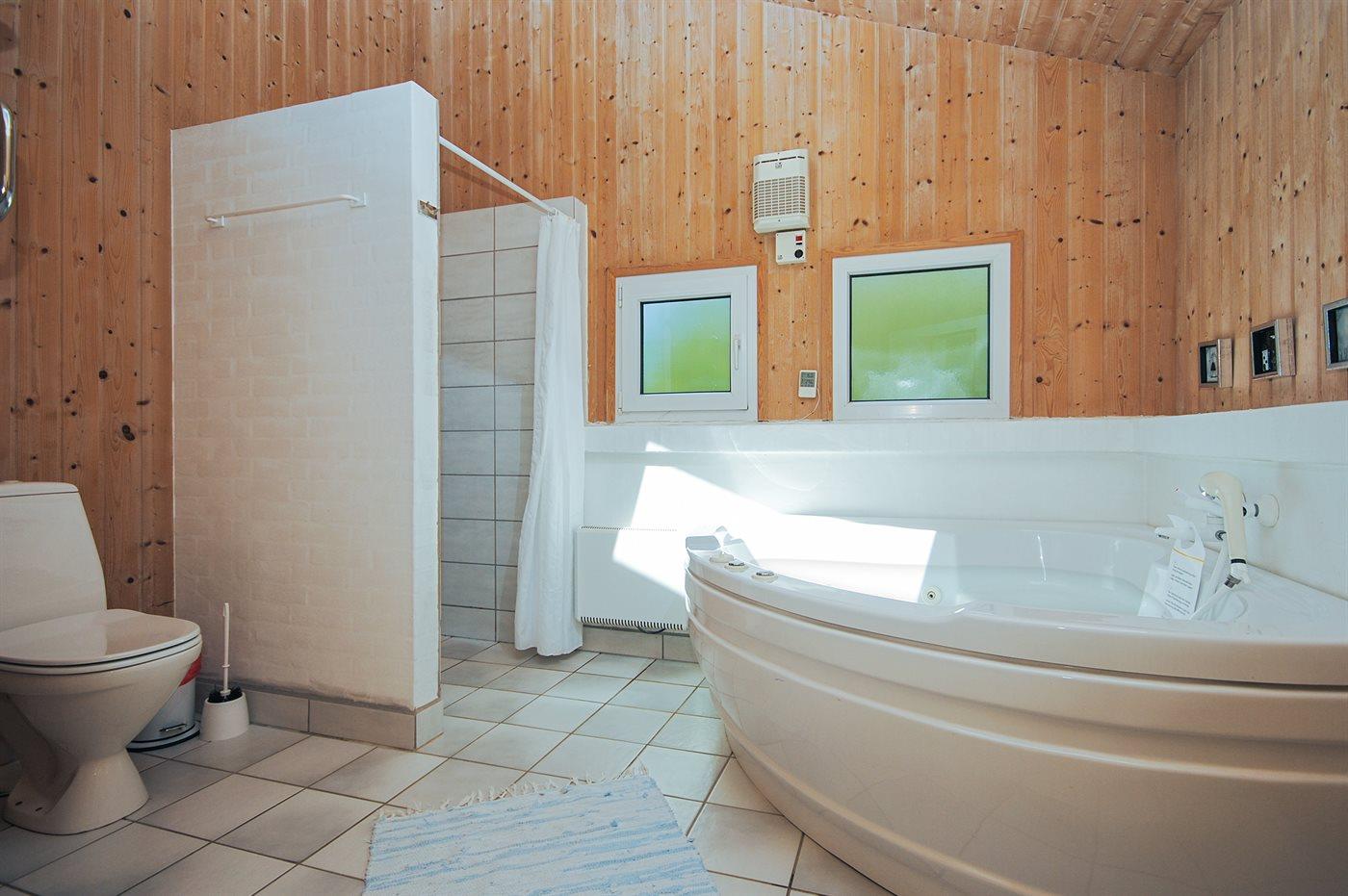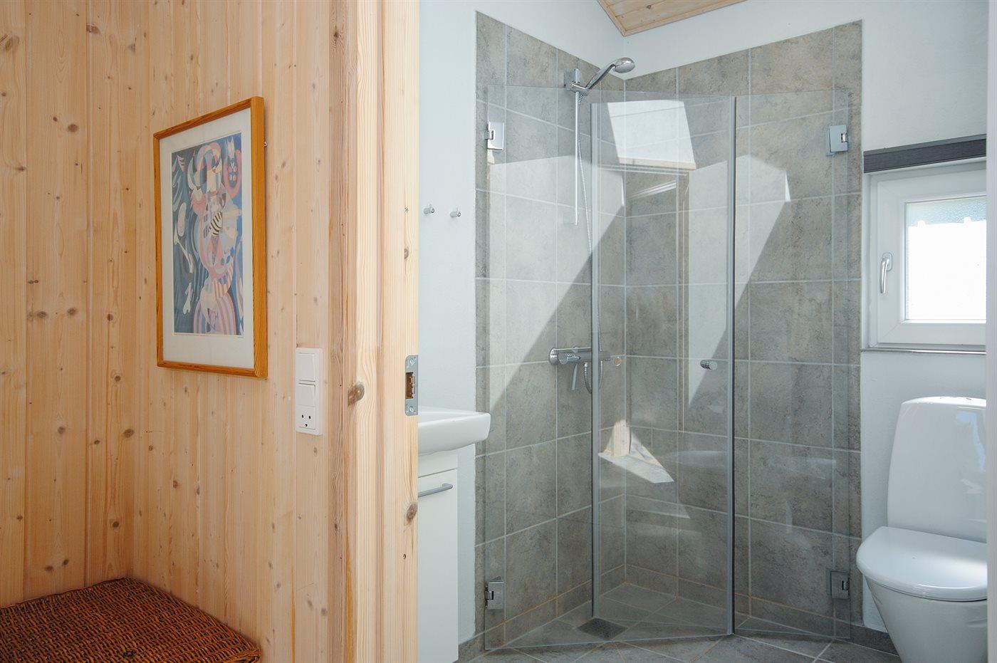 Der er 2 badeværelser med bruseniche og 2 toiletter. Der er gulvvarme på 2 badeværelser. I saunaen er der mulighed for afslapning.
