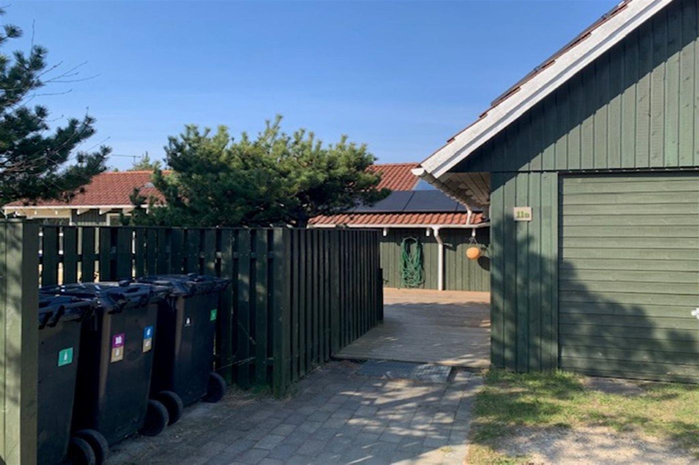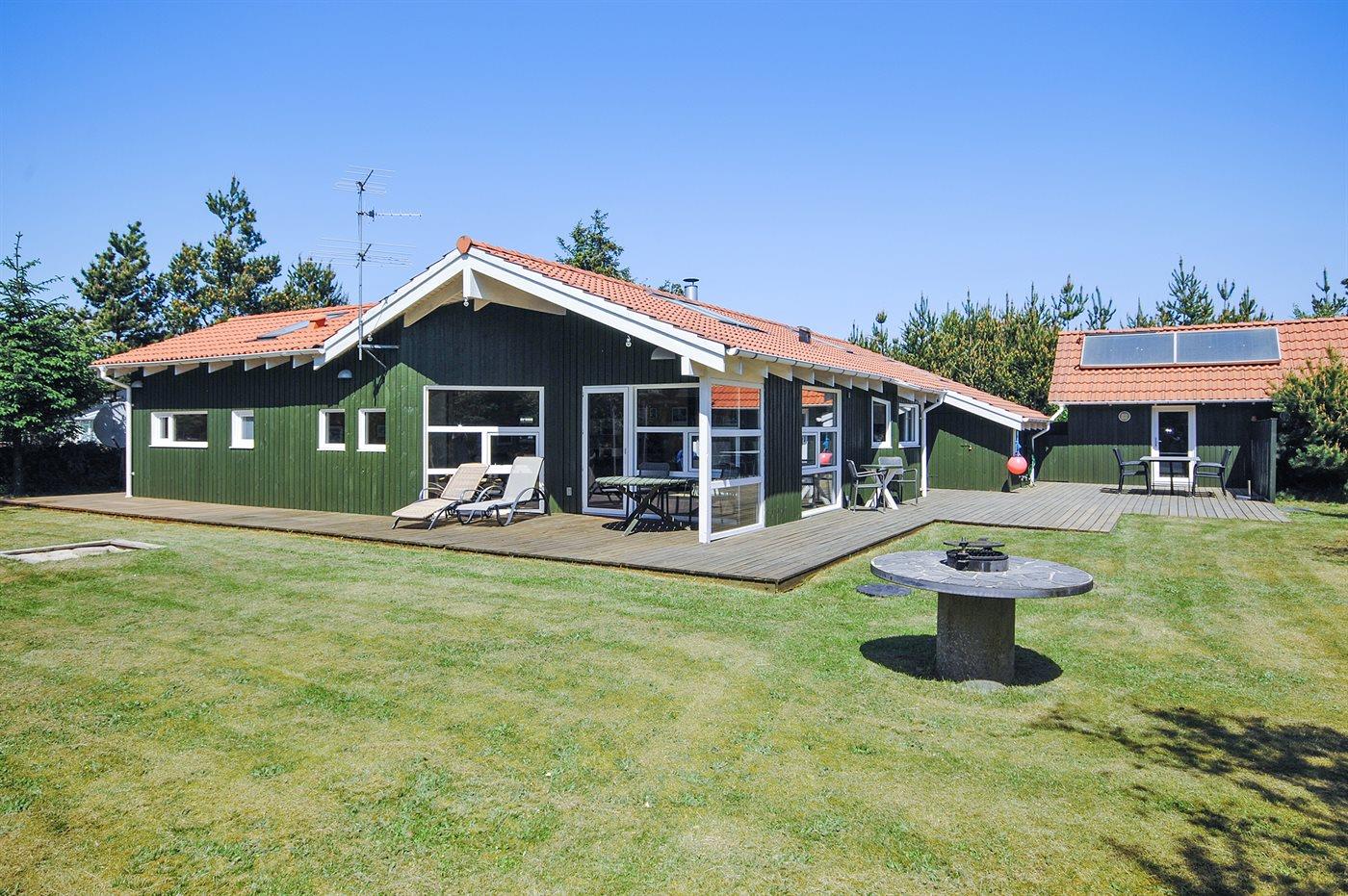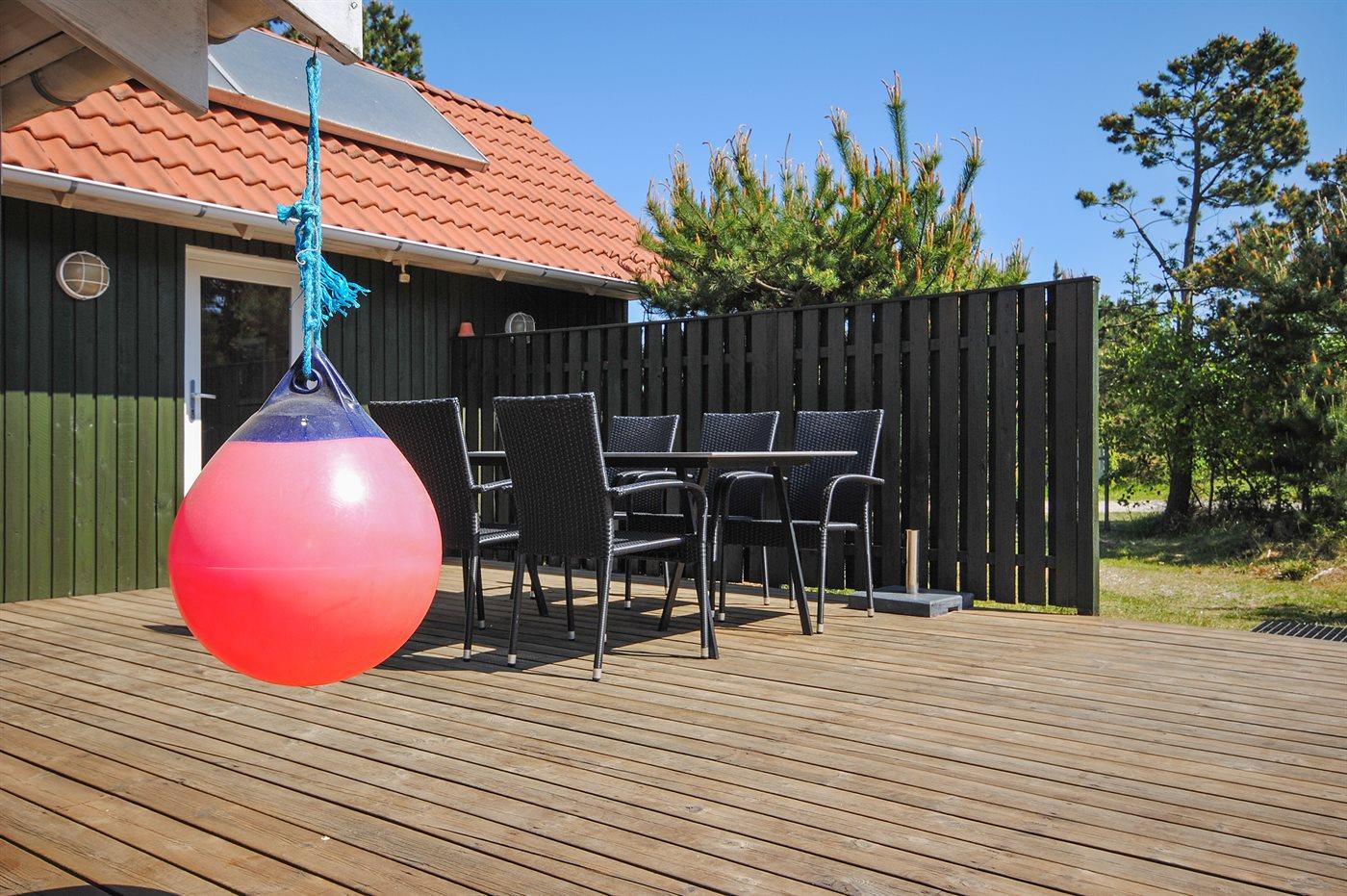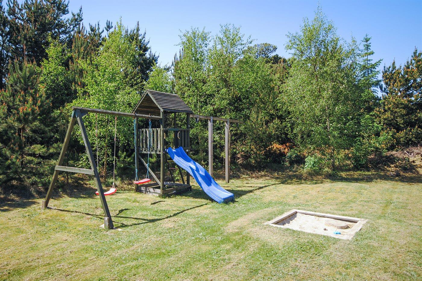 Ferieboligen er beliggende på en 1274 m² stor naturgrund. Der er 900 m til havet. Nærmeste forretning er beliggende i en afstand af 1000 m. Til ferieboligen hører 60 m² terrasseareal. Desuden er der 10 m² overdækket terrasse. Gynge. Sandkasse. Der er installeret stik til opladning af elbil. CEE stik. Parkering ved ferieboligen.