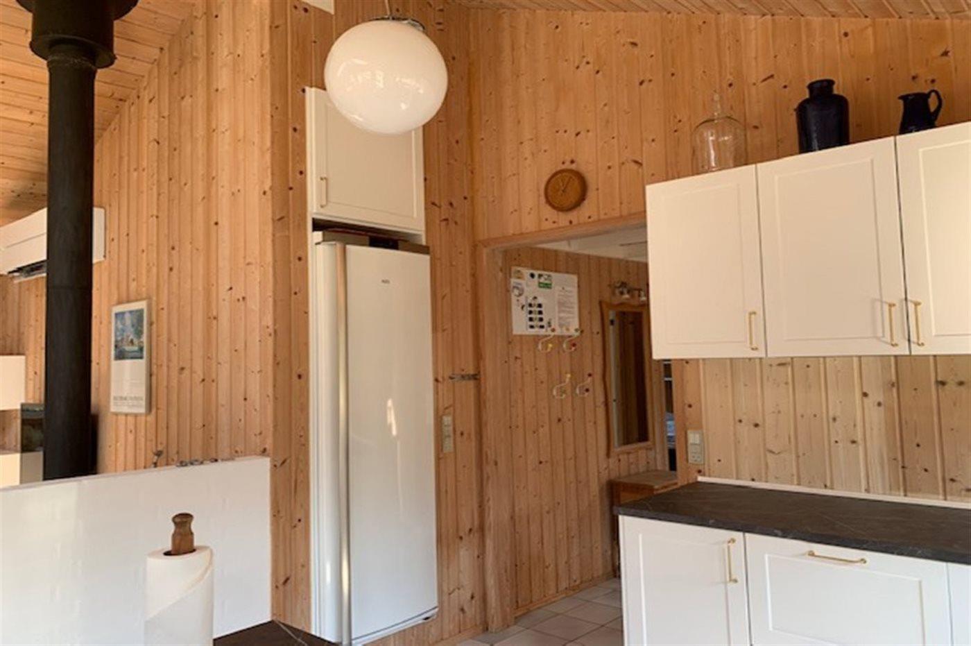 Køkkenet er udstyret med 1 køleskab. Der er 4 induktionskogeplader, varmluftovn, mikrobølgeovn samt opvaskemaskine.