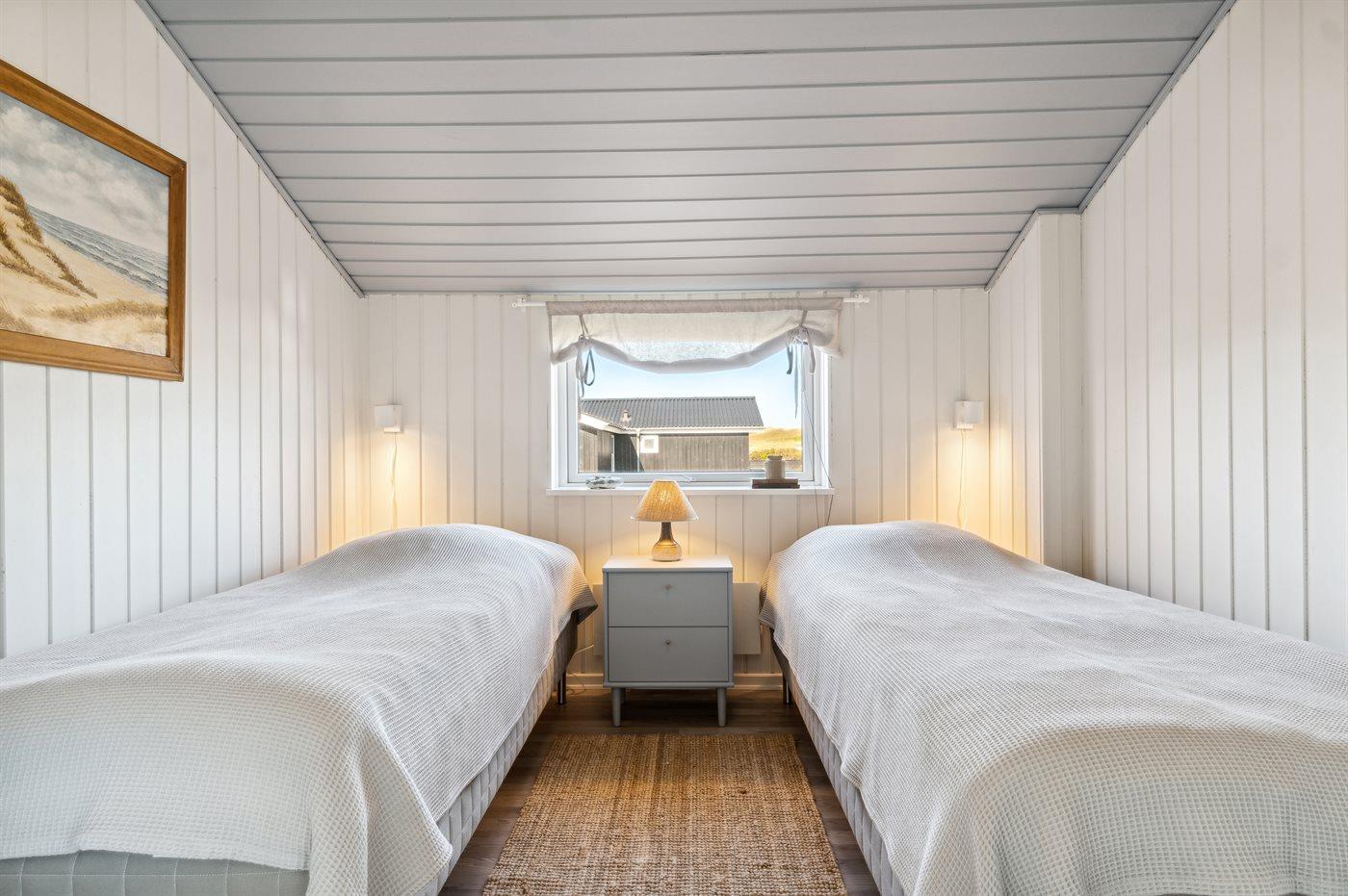 Der er i alt 3 soveværelser. Sovepladserne fordeler sig på: 4 sovepladser i dobbeltsenge. 2 sovepladser i enkeltsenge. 2 sovepladser i alkove. Derudover er der 1 stk. barneseng.