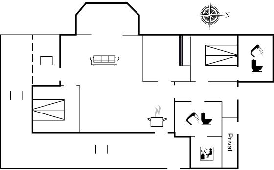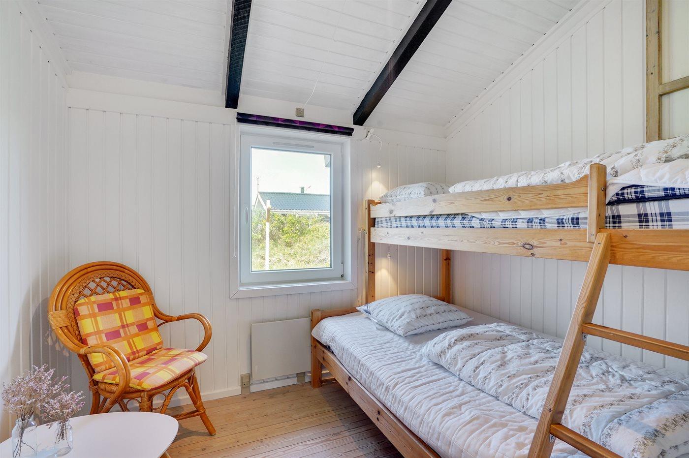 Der er i alt 3 soveværelser. Sovepladserne fordeler sig på: 4 sovepladser i dobbeltsenge. 2 sovepladser i køjeseng.