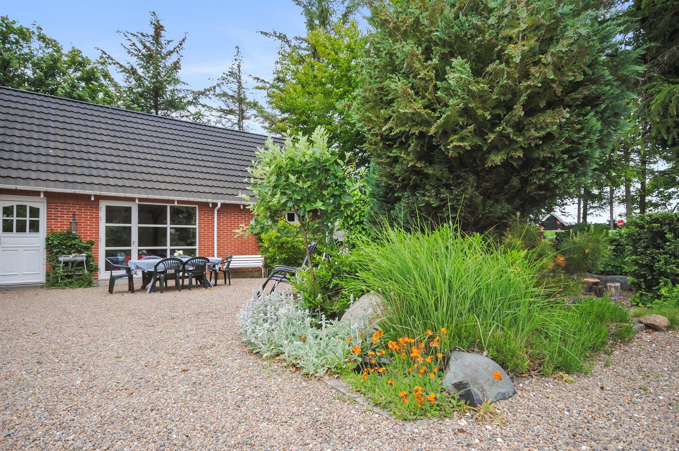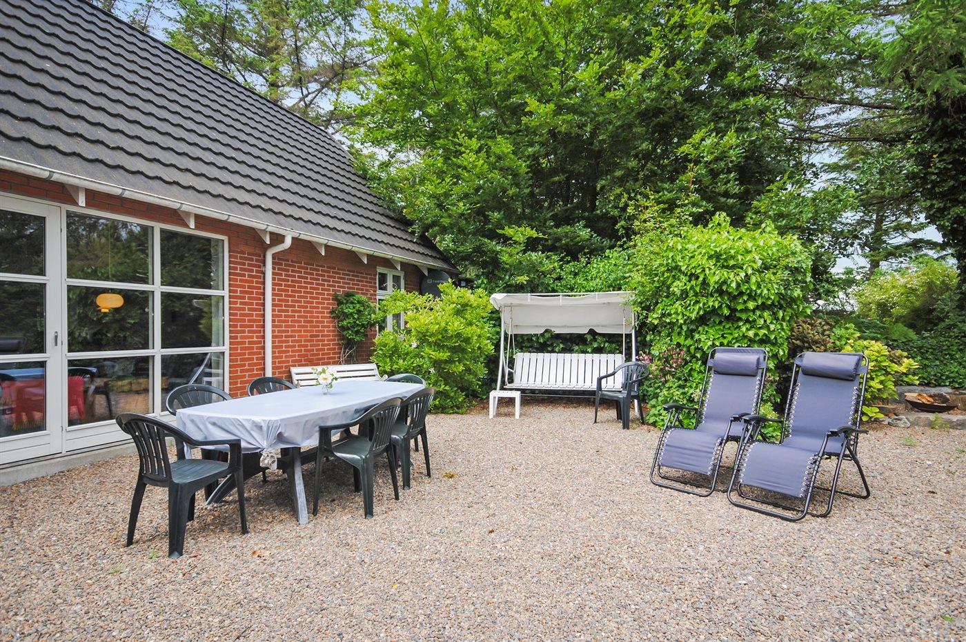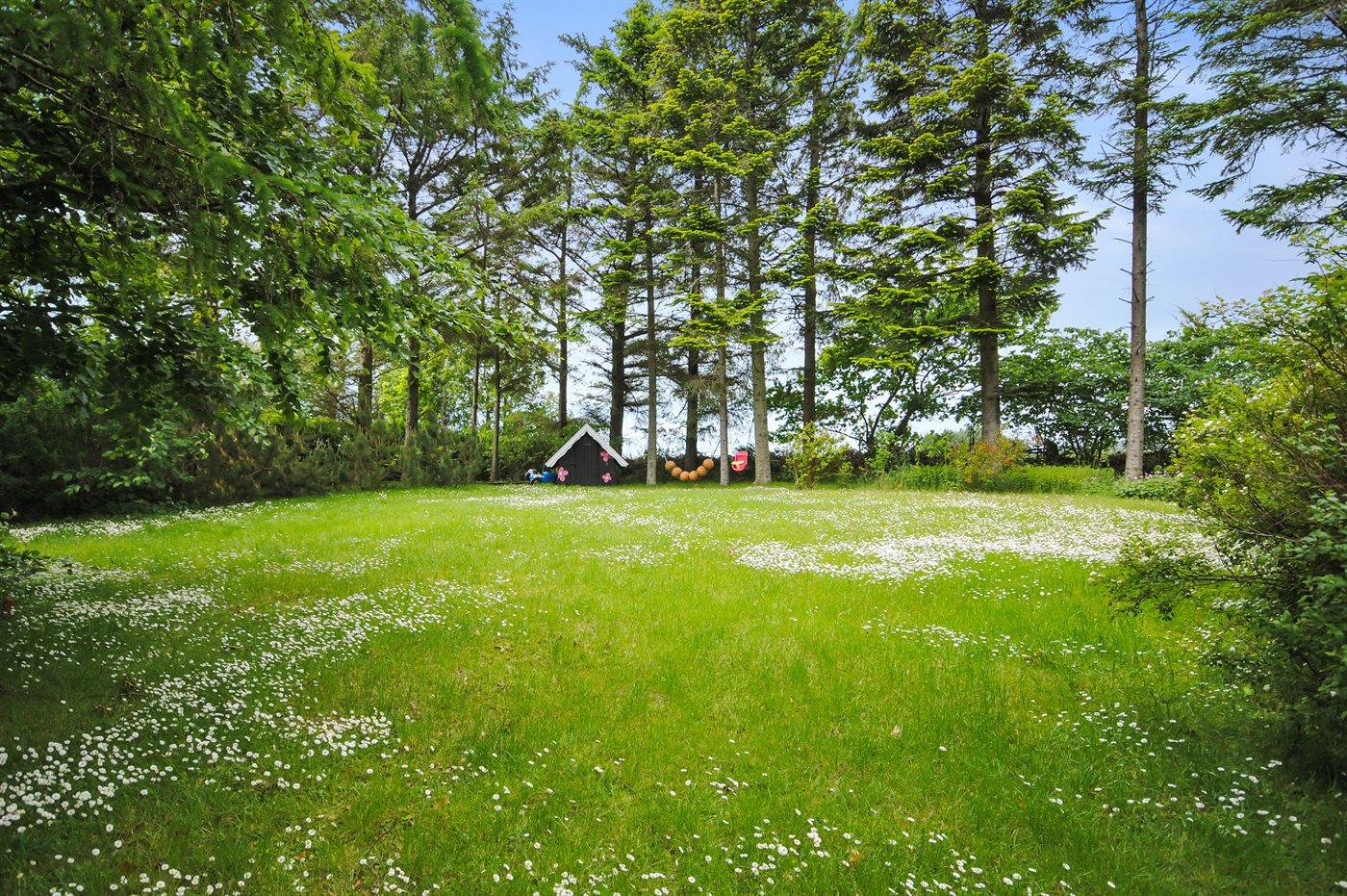 Ferieboligen er beliggende på en 2500 m² stor havegrund. Grunden er indhegnet. Der er 7000 m til havet. Der er en sø i en afstand af 1000 m. Nærmeste forretning er beliggende i en afstand af 7000 m. Til ferieboligen hører 18 m² terrasseareal. Desuden er der 18 m² overdækket terrasse. Gynge. Sandkasse. Legehus. Bålsted. Grill til rådighed. Parkering ved ferieboligen.