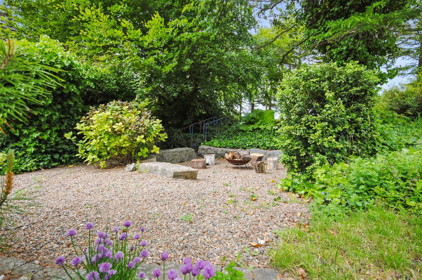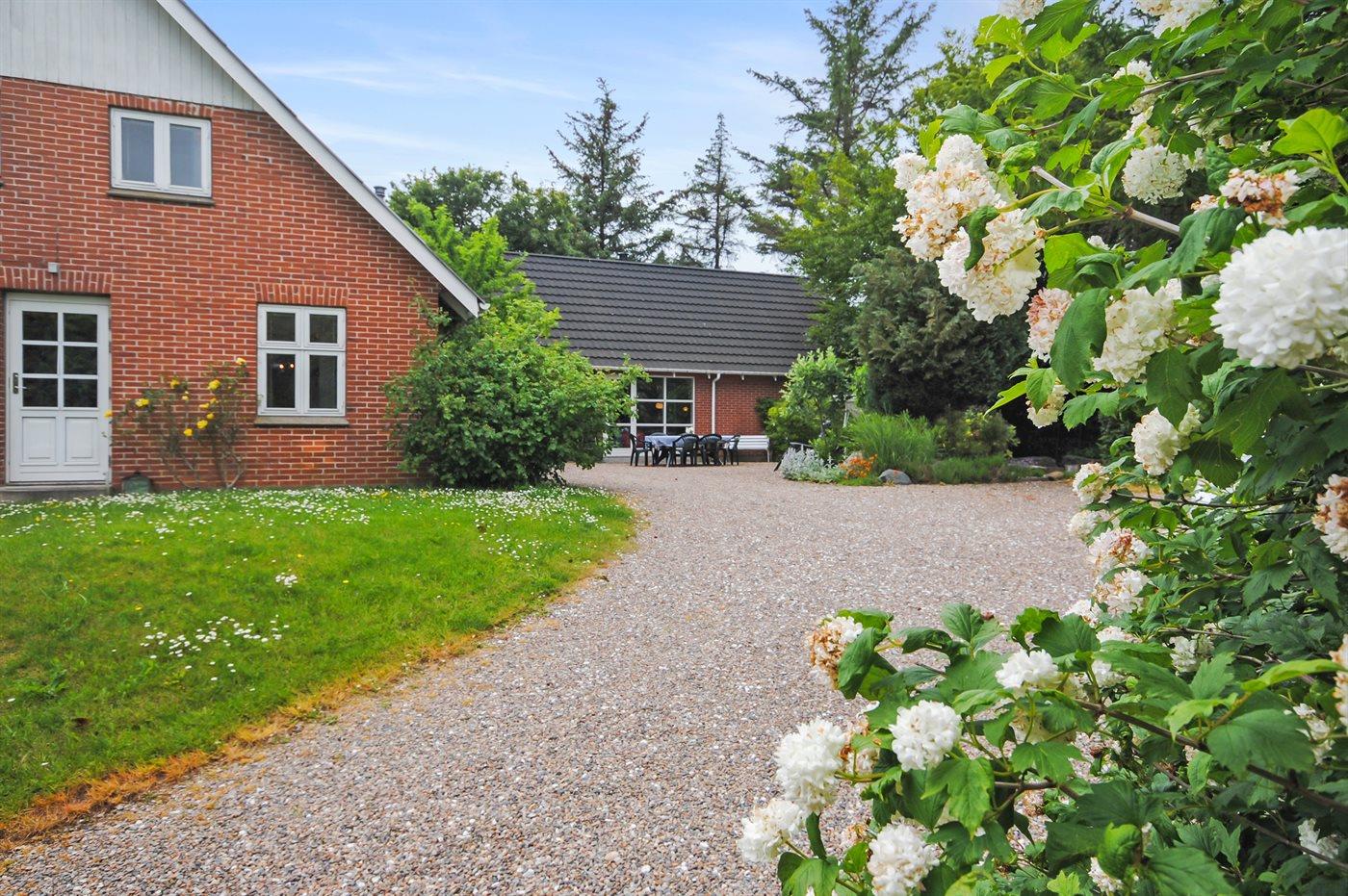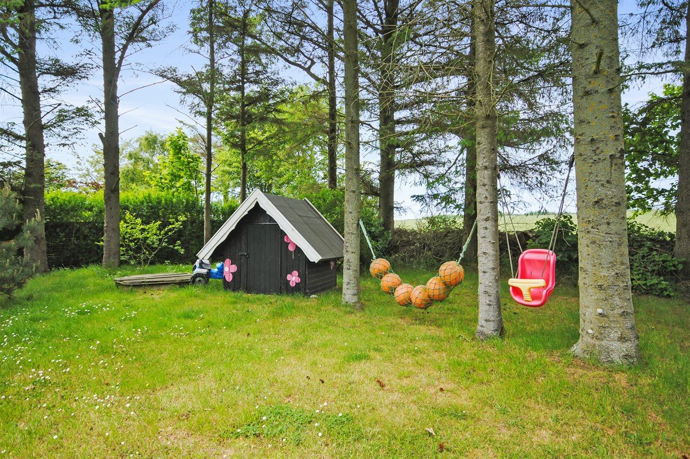 Ferieboligen er beliggende på en 2500 m² stor havegrund. Grunden er indhegnet. Der er 7000 m til havet. Der er en sø i en afstand af 1000 m. Nærmeste forretning er beliggende i en afstand af 7000 m. Til ferieboligen hører 18 m² terrasseareal. Desuden er der 18 m² overdækket terrasse. Gynge. Sandkasse. Legehus. Bålsted. Grill til rådighed. Parkering ved ferieboligen.