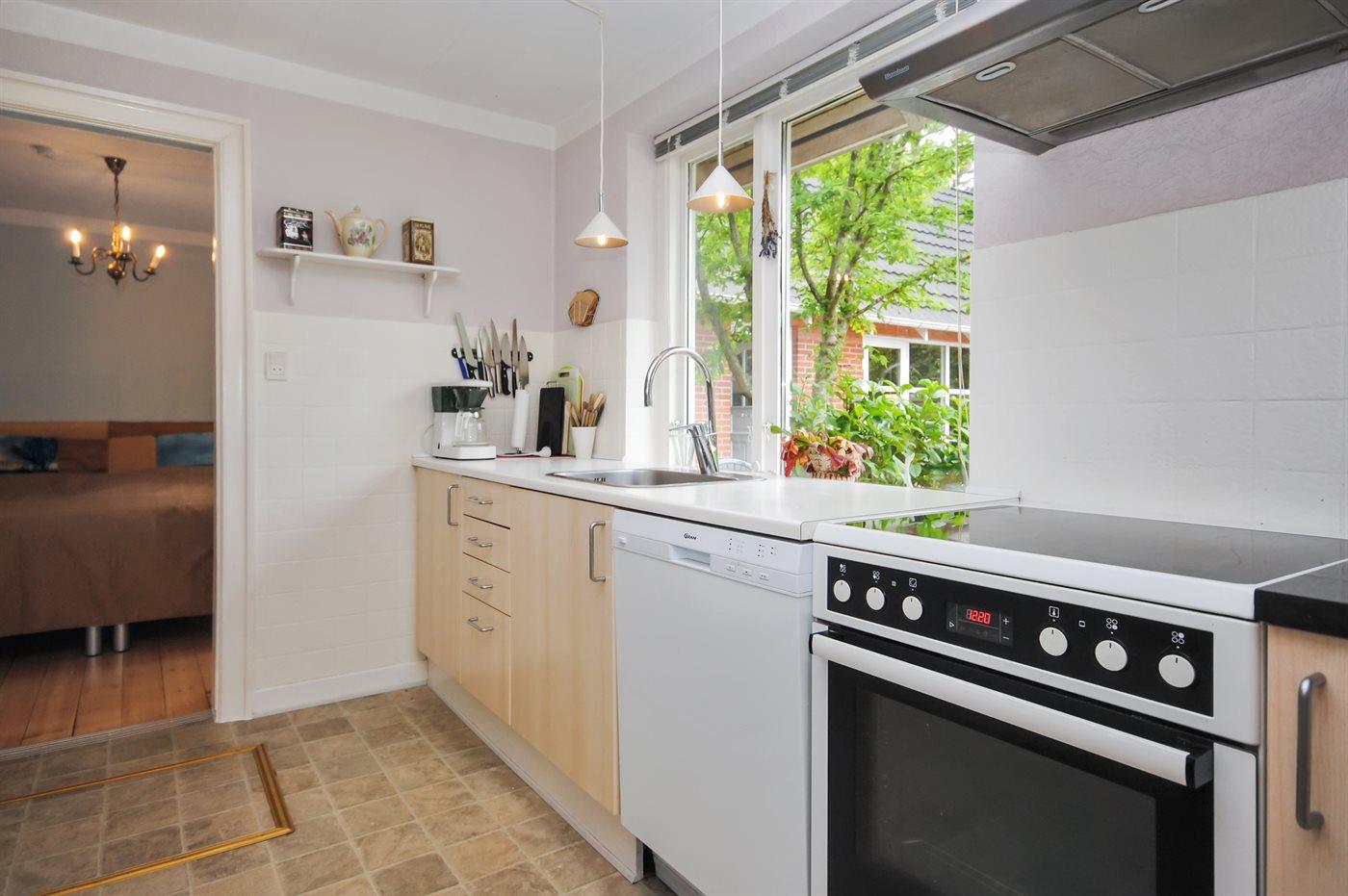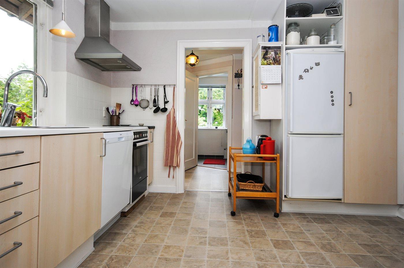 Køkkenet er udstyret med 2 køleskabe. Der er 4 induktionskogeplader, varmluftovn, mikrobølgeovn samt opvaskemaskine.