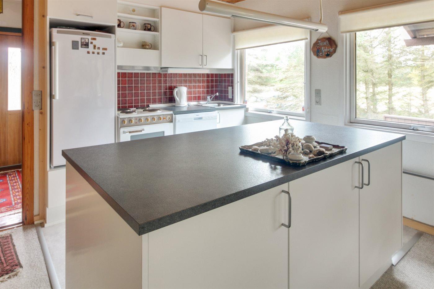 Køkkenet er udstyret med 1 køleskab. Der er 4 elkogeplader, bageovn samt opvaskemaskine.