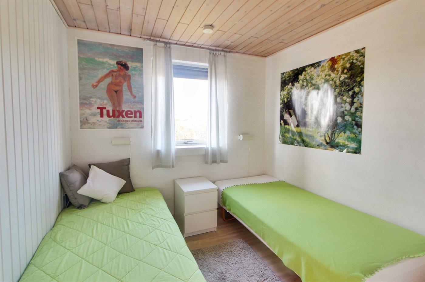 Der er i alt 3 soveværelser. Sovepladserne fordeler sig på: 2 sovepladser i dobbeltseng. 2 sovepladser i enkeltsenge. 2 sovepladser i sovesofa (dobbelt). Derudover er der 1 stk. barneseng.