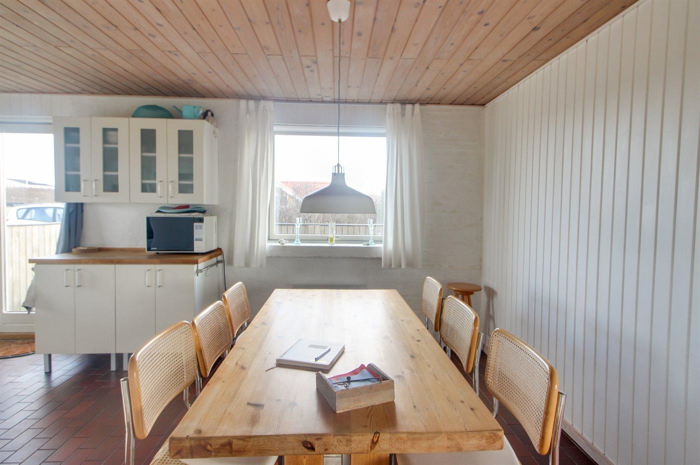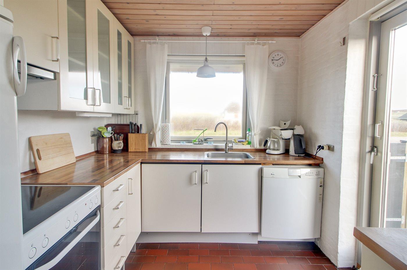 Køkkenet er udstyret med 1 køleskab. Der er 4 induktionskogeplader, varmluftovn, mikrobølgeovn samt opvaskemaskine.