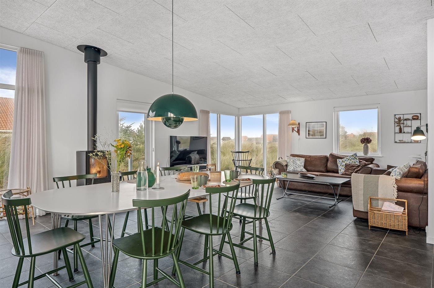 Sommerhuset egner sig til 10 personer. Ferieboligen er på 150 m² og er bygget i 2014. Det er tilladt at medbringe 2 husdyr. Ferieboligen er udstyret med energibesparende varmepumpe. Hele ferieboligen har gulvvarme. Ferieboligen har vaskemaskine. Tørretumbler. Frysekapacitet på 80 liter. Der er desuden brændeovn. Til de små er der 1 stk. barnestol.