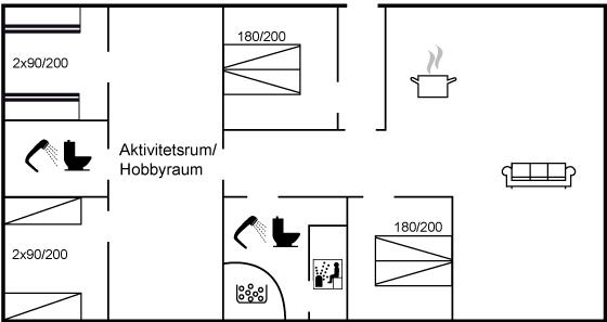 Der er i alt 4 soveværelser. Sovepladserne fordeler sig på: 6 sovepladser i dobbeltsenge. 4 sovepladser i køjesenge.